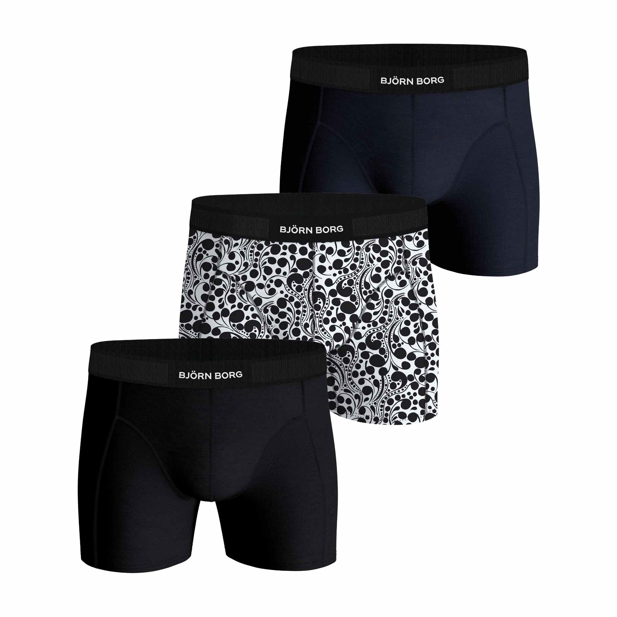 Entdecke Komfort und zeitloses Design mit diesen Premium-Boxershorts von Björn Borg im praktischen 3er-Pack. Die Boxershorts bestehen aus hochwertiger, langstapeliger Bio-Baumwolle mit Stretch-Anteil und bieten eine perfekte Passform. Der mittelhohe Bund aus weicher Mikrofaser mit ikonischem Logo sorgt für ein angenehmes Tragegefühl und ein sportliches Erscheinungsbild. Dank des verstärkten Schrittbereichs bieten die Shorts optimalen Halt und bleiben auch bei häufigem Tragen in Form. Ein Set zeitloser Boxershorts mit durchdachtem Design.