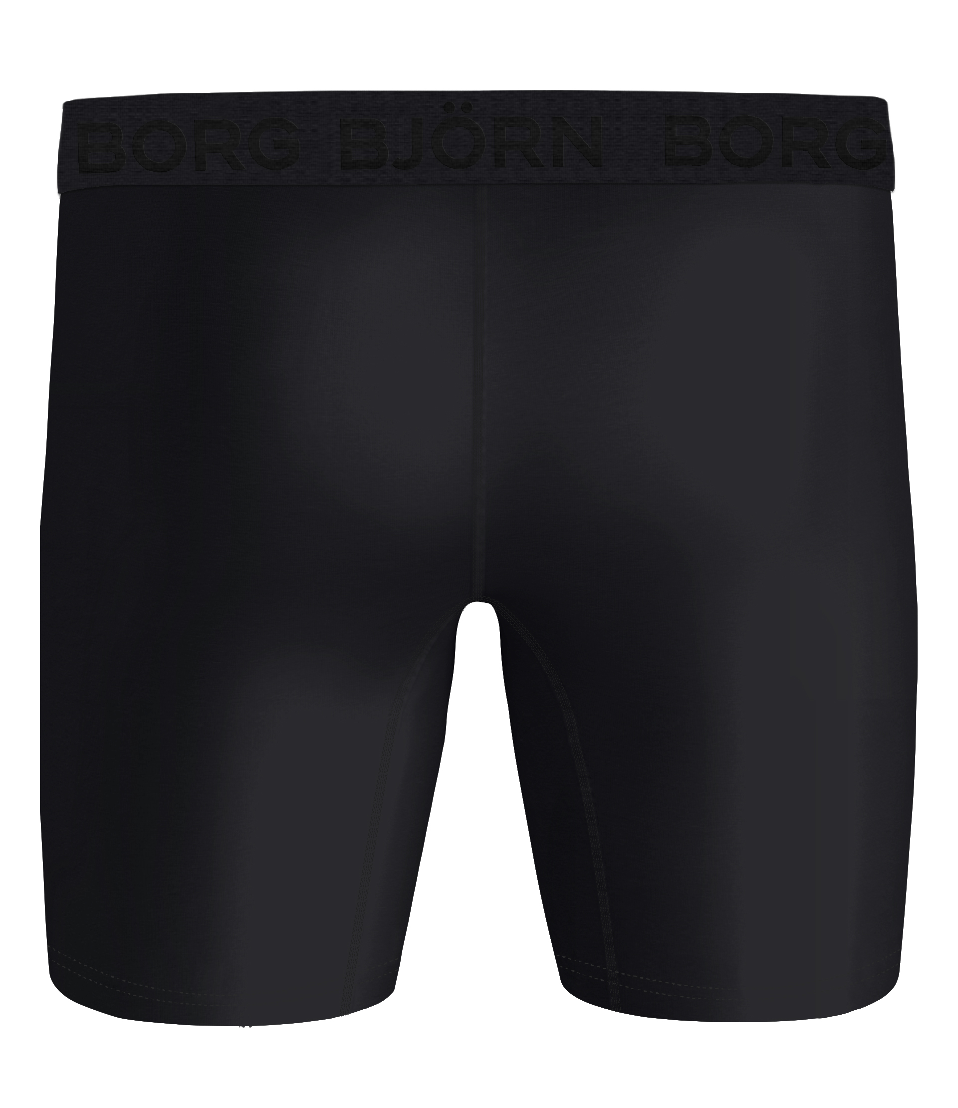 Zwei lange Performance Shorts von Björn Borg mit längeren Beinen speziell für den sportlichen Mann. Die langen Boxershorts bestehen aus einer feuchtigkeitsableitenden Mikrofaser auf Polyesterbasis, die für ein angenehmes Tragegefühl beim Training oder auf der Radtour sorgt. Die Boxershorts haben flache Nähte, um Scheuerstellen zu vermeiden.