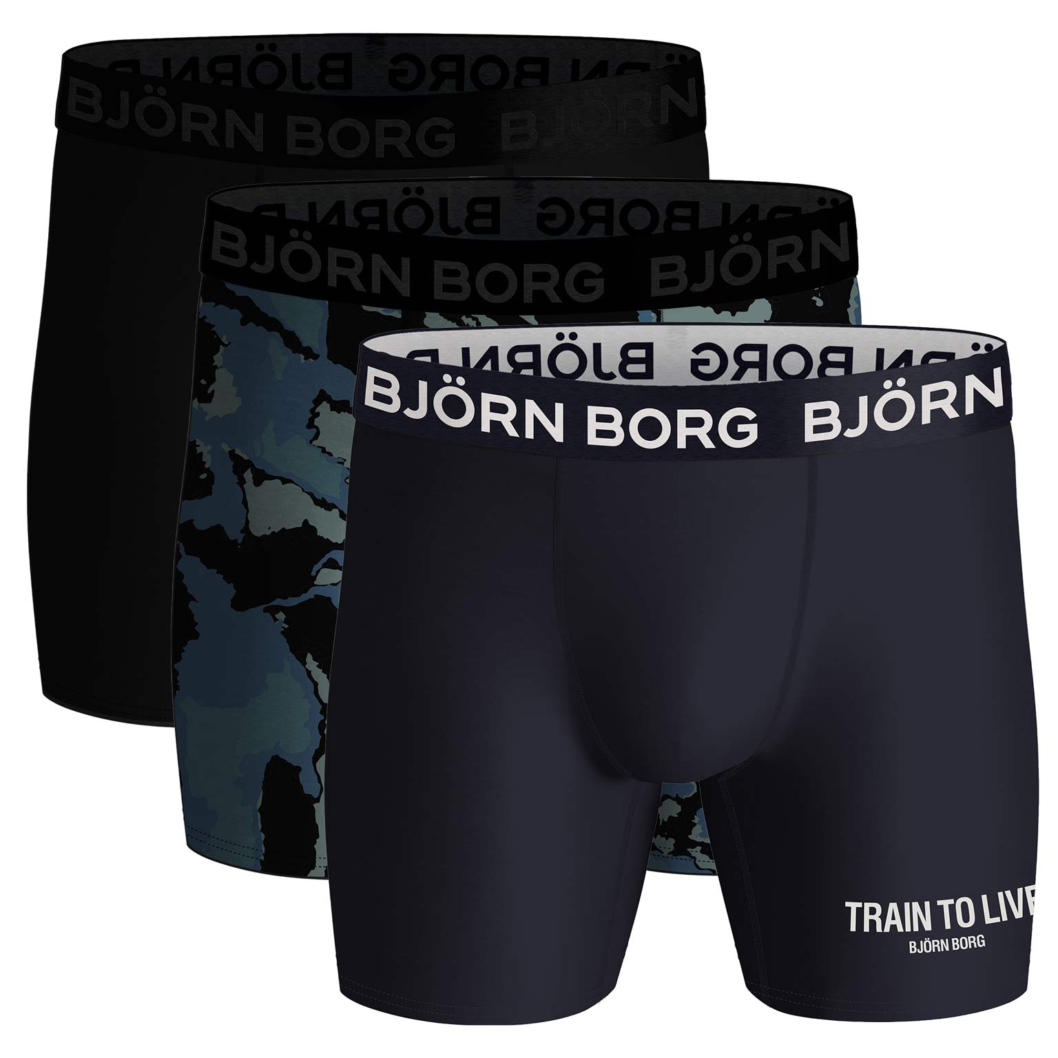 Leistungsstarke Shorts, speziell für den sportlichen Mann entwickelt. Die High Performance Shorts von Björn Borg sind aus recycelter Mikrofaser auf Polyesterbasis gefertigt. Mikrofaser ist flexibel, liegt eng an der Haut an und transportiert Feuchtigkeit gut ab. Perfekt für jede schnelle Bewegung, da sich das Material an den Körper anpasst und extrem bequem ist. Die Boxershorts sind mit Flachnähten versehen, um Scheuerstellen zu vermeiden, und der elastische Bund ist mit dem Björn Borg Logo versehen. Mit diesen 3 Sport-Boxershorts von Björn Borg im preisgünstigen Multipack können Sie sich austoben.
