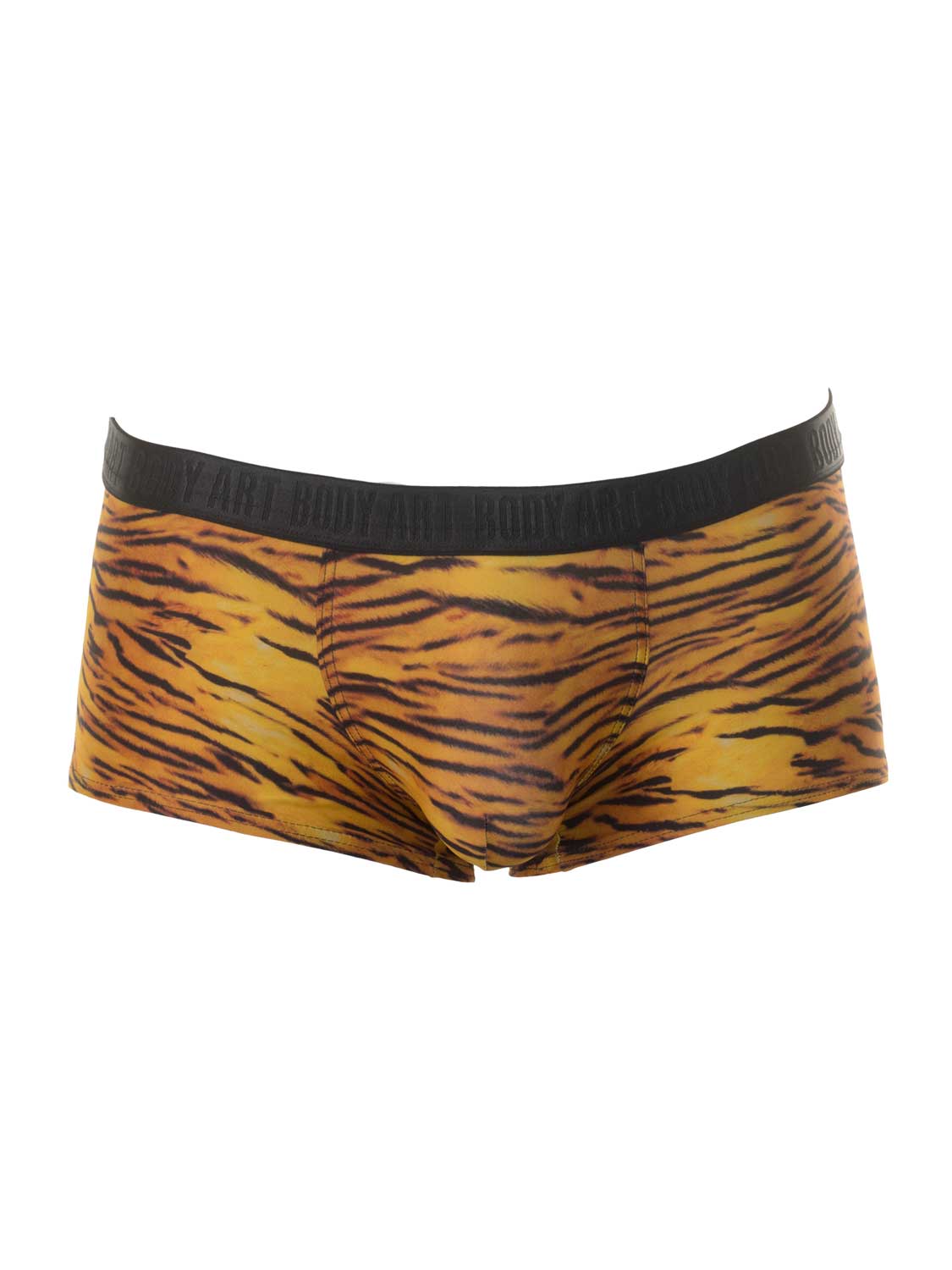 Die Hades-Minipant ist mutig und gewagt mit ihrem auffälligen Tigerprint. Die Hades ist in einer Wüstenfarbe und Silbergrau erhältlich. Der Stoff besteht aus weicher und bequemer Mikrofaser, die eng an der Haut anliegt. Dank des dünnen Stoffs sind die Minipants unter enger Kleidung nahezu unsichtbar. Die Minipant verfügt über ein kleines Etikett mit dem Body Art-Logo, das vorne auf dem schmalen elastischen Bund zentriert ist.