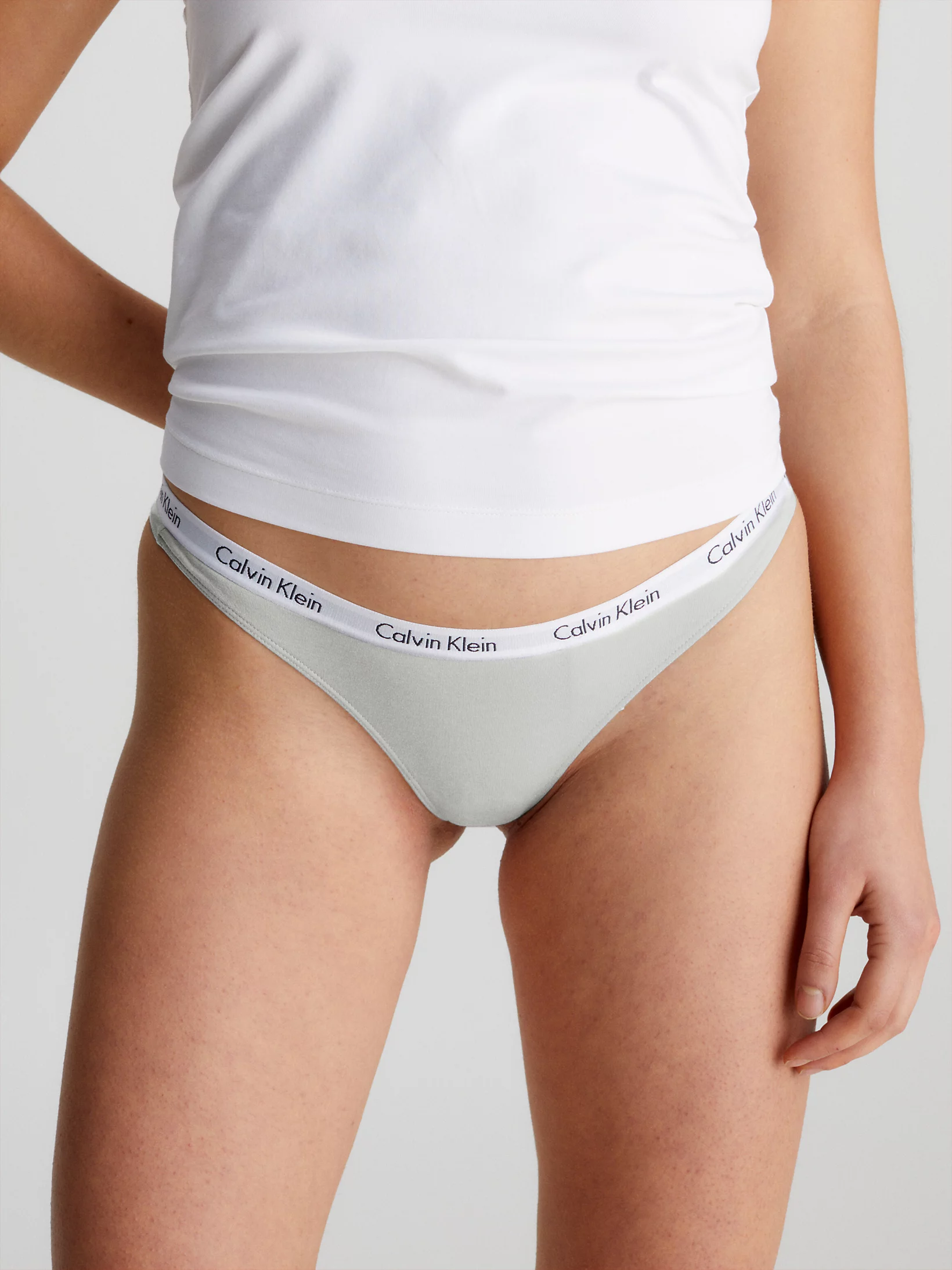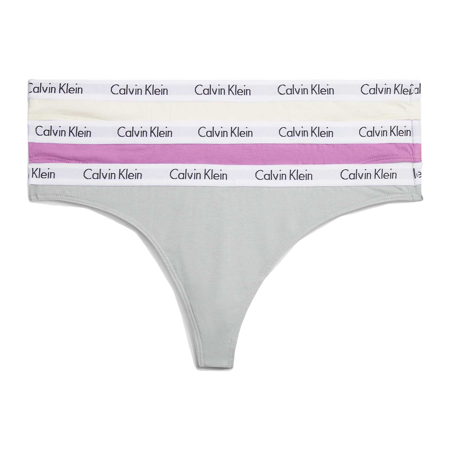 Drei Strings von Calvin Klein in einer Vorteilspackung, hergestellt aus weicher, atmungsaktiver Stretch-Baumwolle in verschiedenen Farben für Abwechslung, mit dem Calvin Klein-Logo auf dem elastischen Taillenbund.