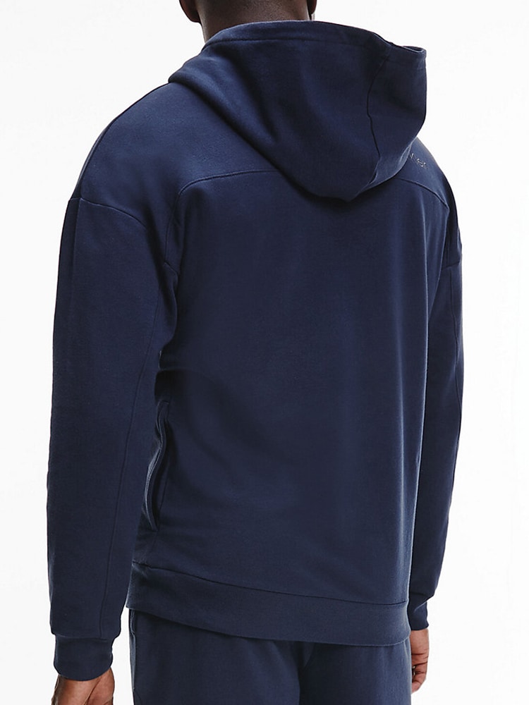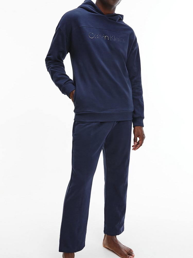Luxuriöser Hoodie mit Logo mit Glanzeffekt auf der Brust. Der Hoodie hat eine dunkelblaue Farbe und ist aus Bio-Baumwolle gefertigt. Für optimale Bequemlichkeit und Komfort gibt es Taschen am Saum und der Kapuzenpullover hat eine normale Passform.
