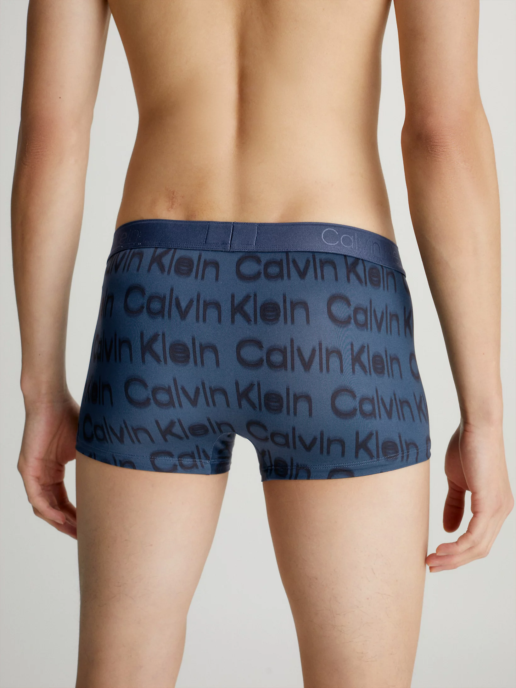 Seien Sie stilvoll mit der luxuriösen Black Collection Serie von Calvin Klein. Darüber hinaus ist sie super bequem. Dieser Low Rise Trunk wird tief auf den Hüften getragen und besteht aus einer dunkelblauen Mikrofaser mit einem abstrakten Logo.