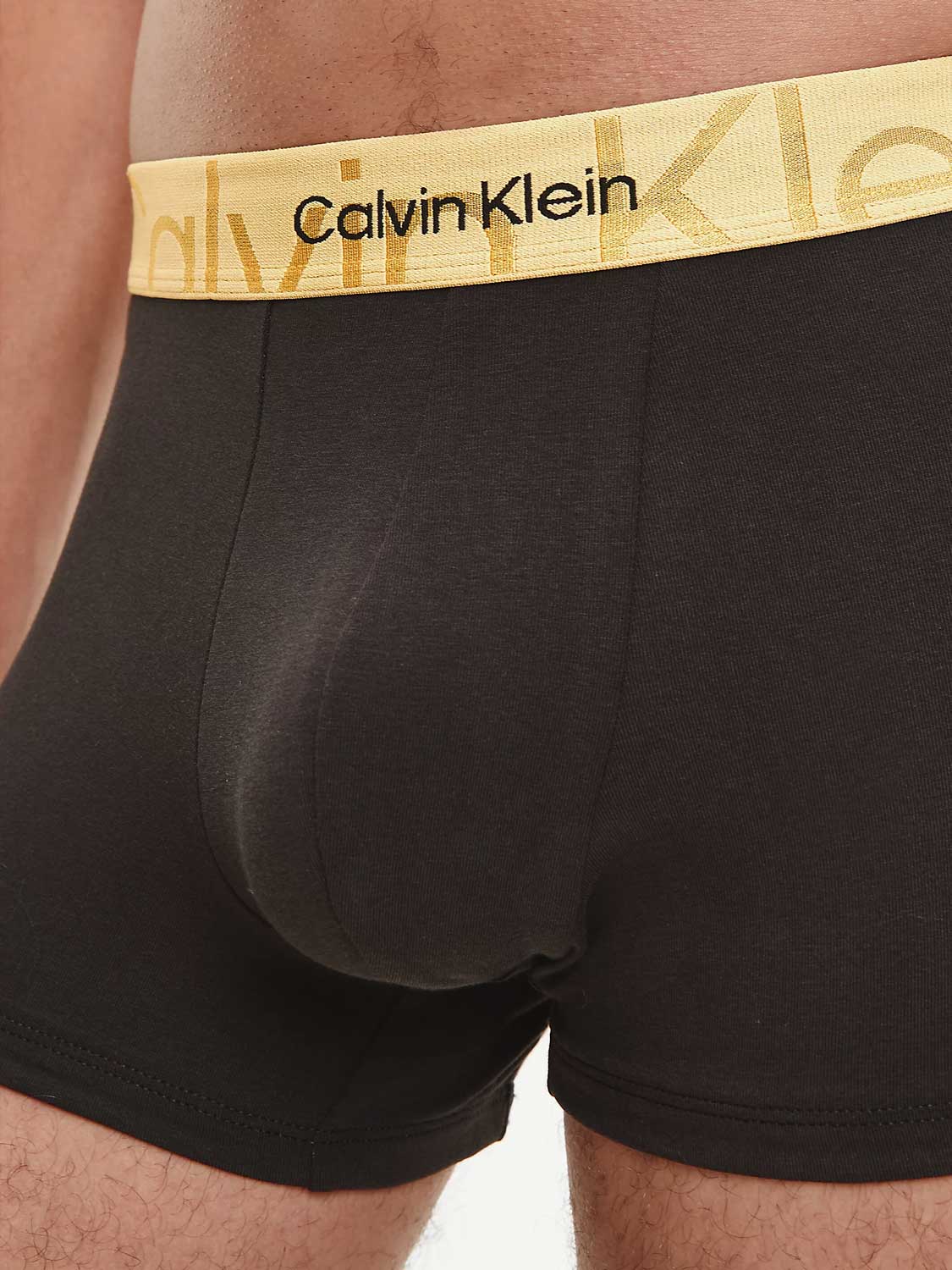 Diese Calvin Klein Trunk ist aus weicher Stretch-Baumwolle gefertigt und passt sich gut dem Körper an. Baumwolle ist atmungsaktiv und behält auch nach mehrmaligem Waschen eine hervorragende Passform. Der Rumpf ist in der Farbe Schwarz gehalten und hat einen ikonischen Calvin Klein Bund in auffälliger Goldfarbe.