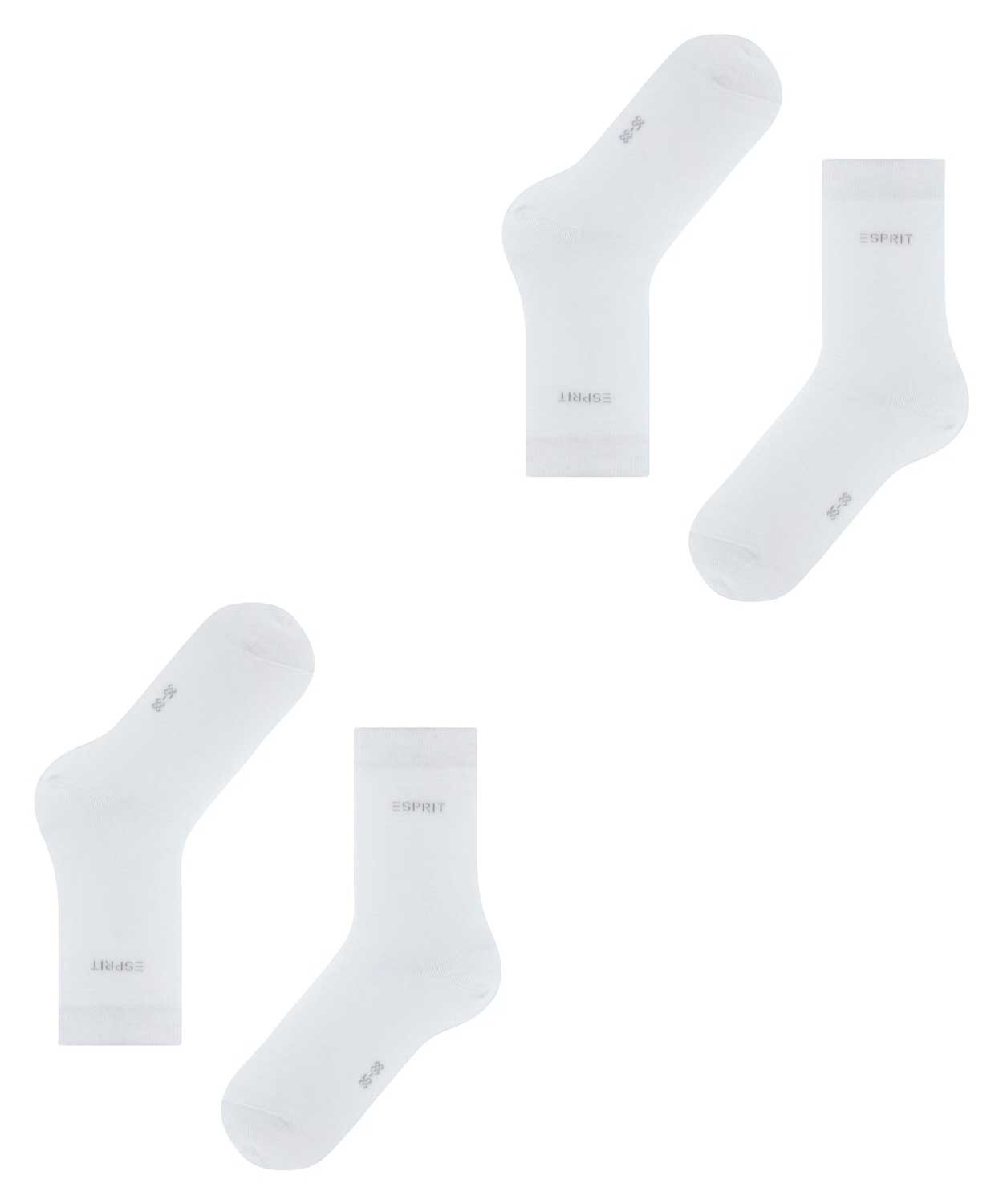 2 Paar Damensocken in einer Vorteilspackung von Esprit, hergestellt aus einer feinen Baumwoll/Polyamid-Mischung mit Baumwolle aus biologischem Anbau. Die Socken fühlen sich wunderbar weich an den Füßen an und passen perfekt. Der Markenname Esprit ist an der Seite der Socken zu sehen. Die Socken sind für den normalen täglichen Gebrauch geeignet und in verschiedenen modischen Farben erhältlich, um sie mit deinem Outfit zu kombinieren.