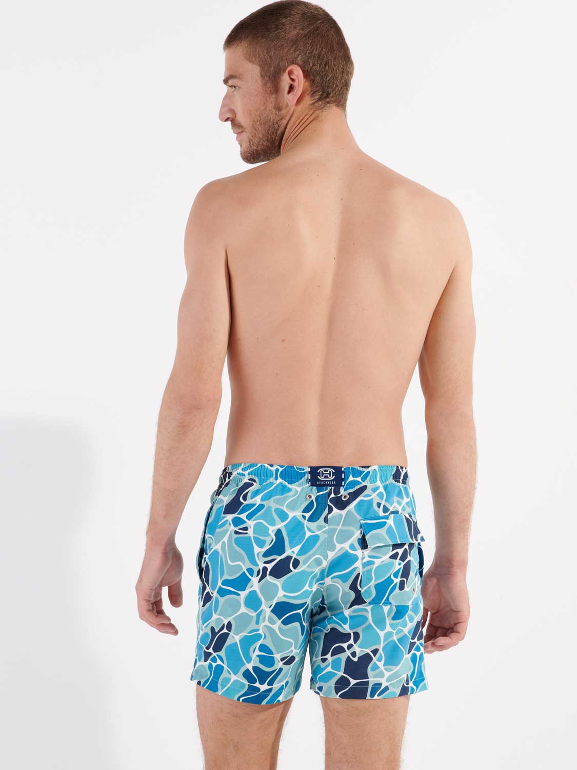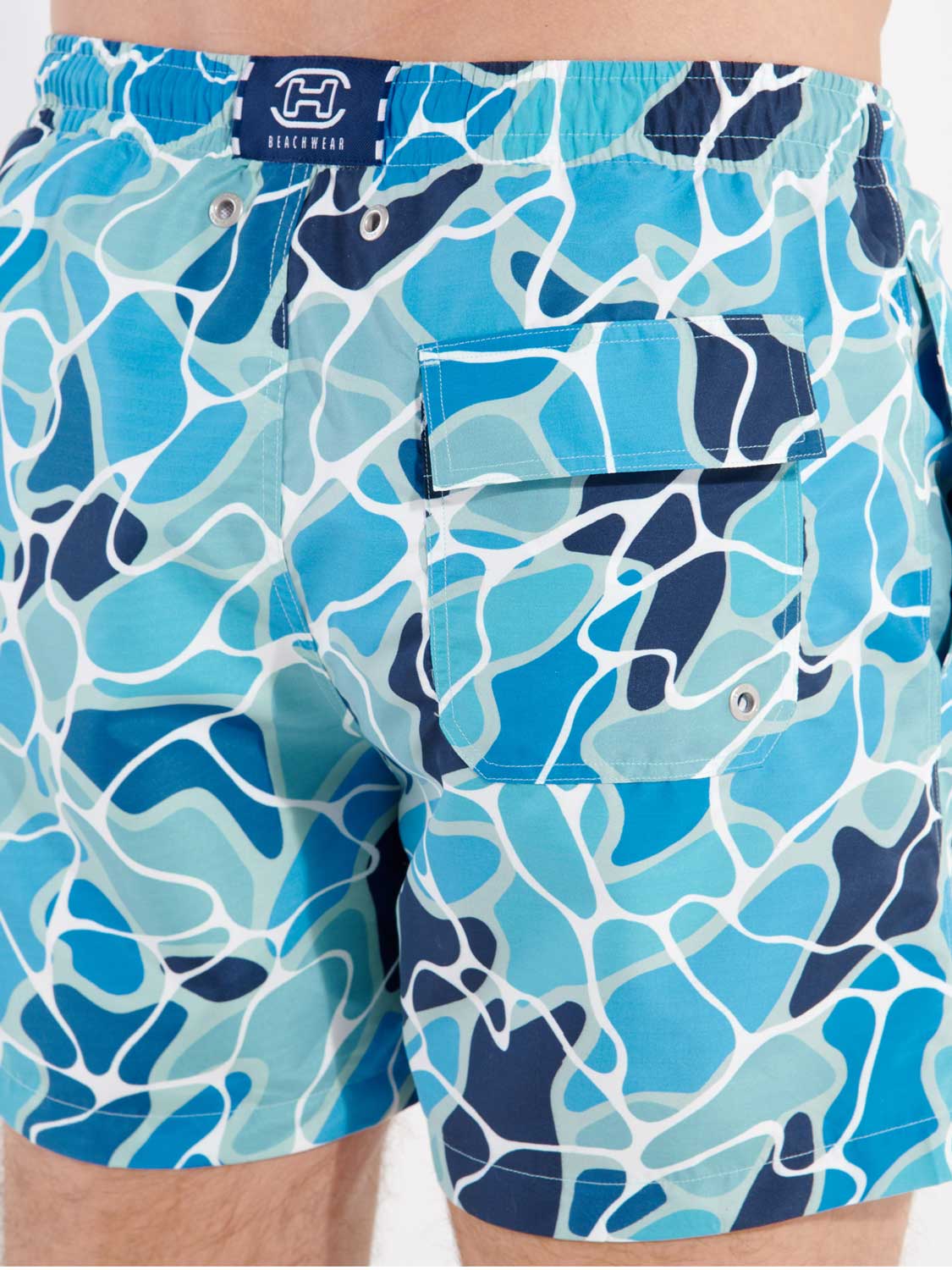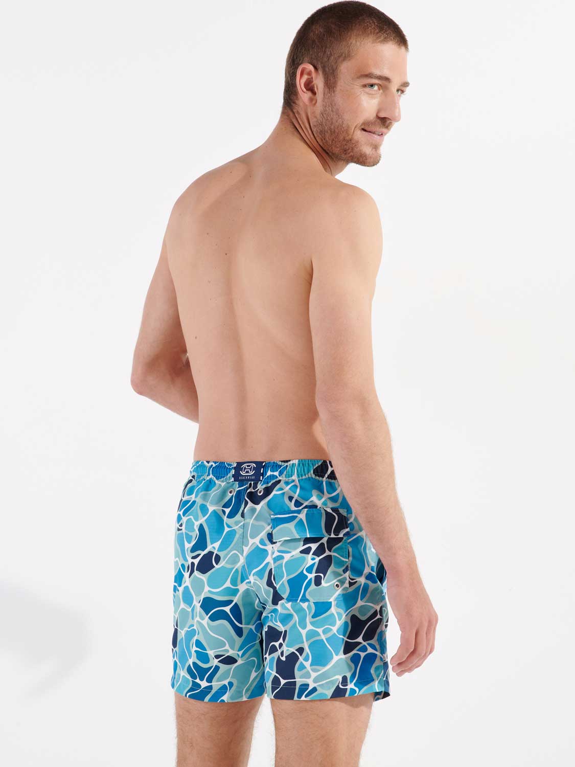 Die Alain - Beach Boxer hat einen schönen Druck in der Farbe Blau mit einem Welleneffekt. Die Beach Boxer hat Taschen am linken und rechten Saum und verfügt über Innenshorts für zusätzlichen Komfort und Halt. Mit dem Kordelzug im Bund können Sie die Beach Boxer auf die perfekte Größe einstellen, so dass Sie mit Zuversicht ein erfrischendes Bad nehmen können. Der Stoff besteht aus Polyester, wodurch die Beach Boxer schnell trocknet. Ideal für den Strand oder wenn Sie danach auf die Terrasse gehen wollen.