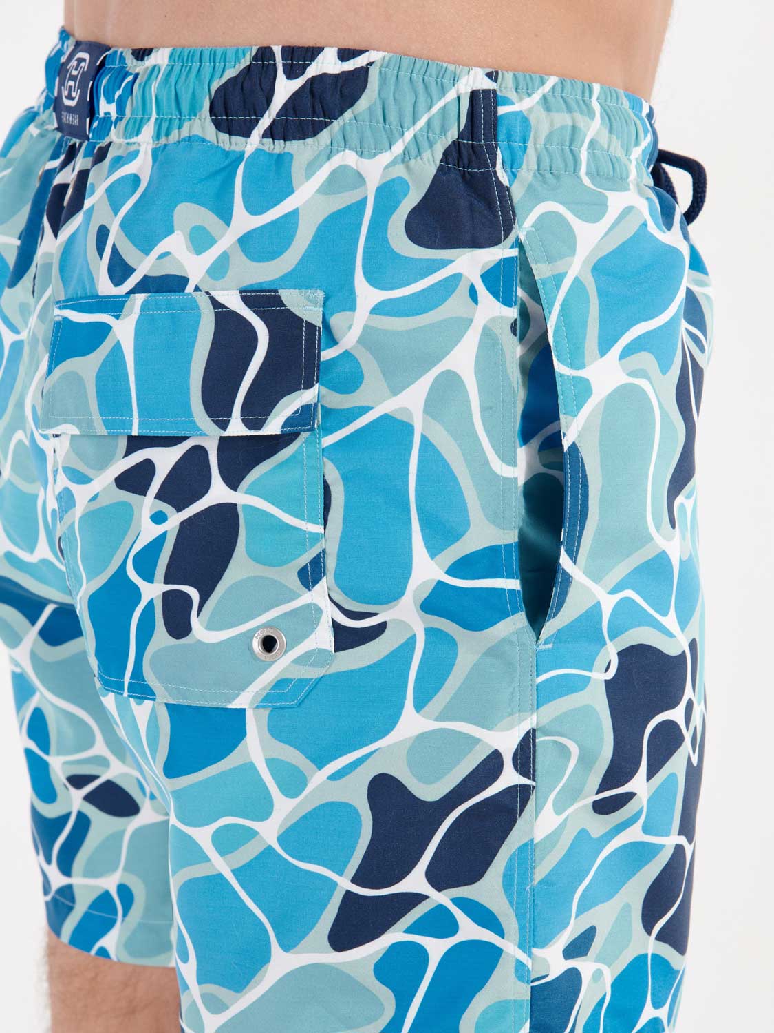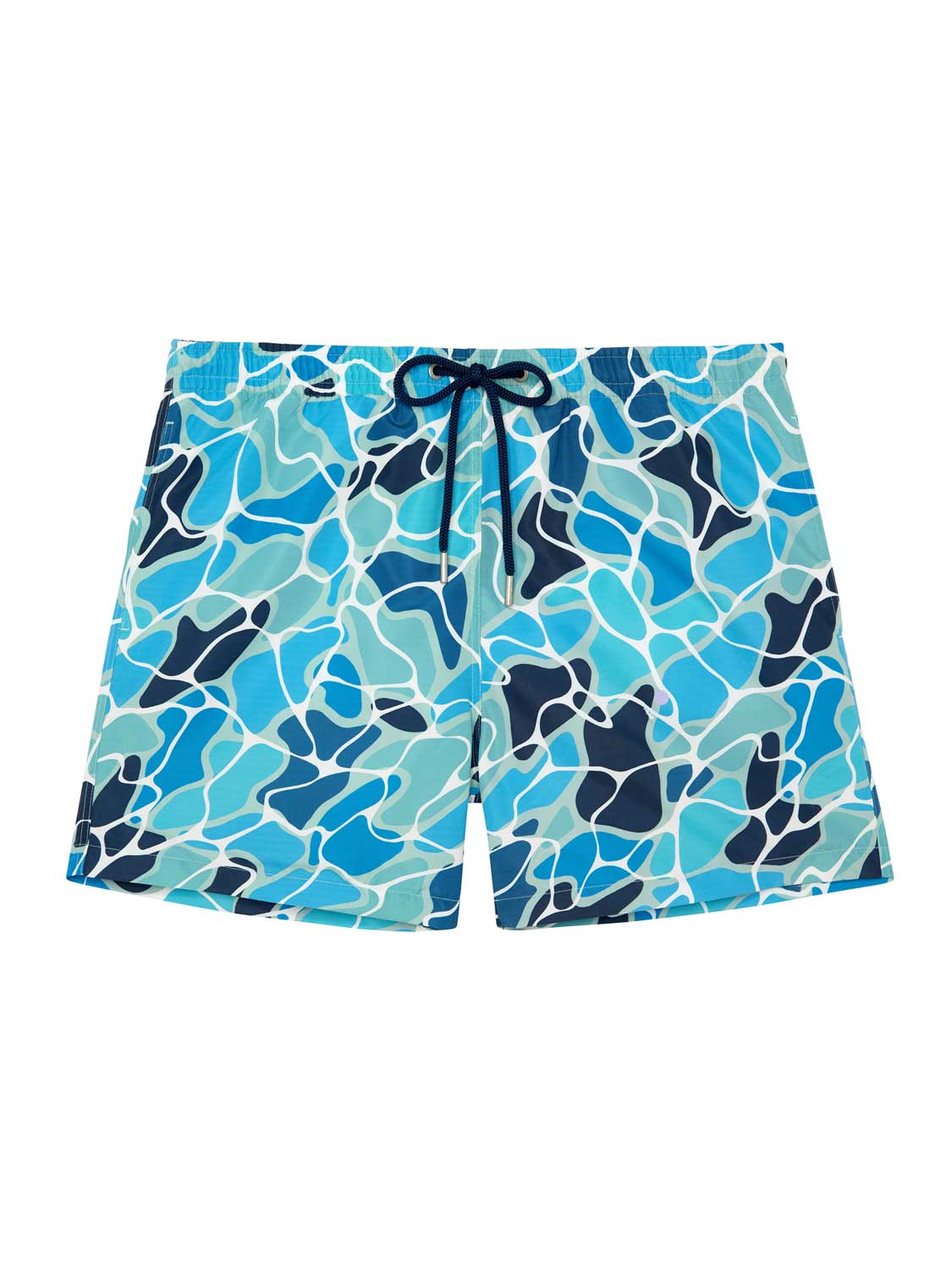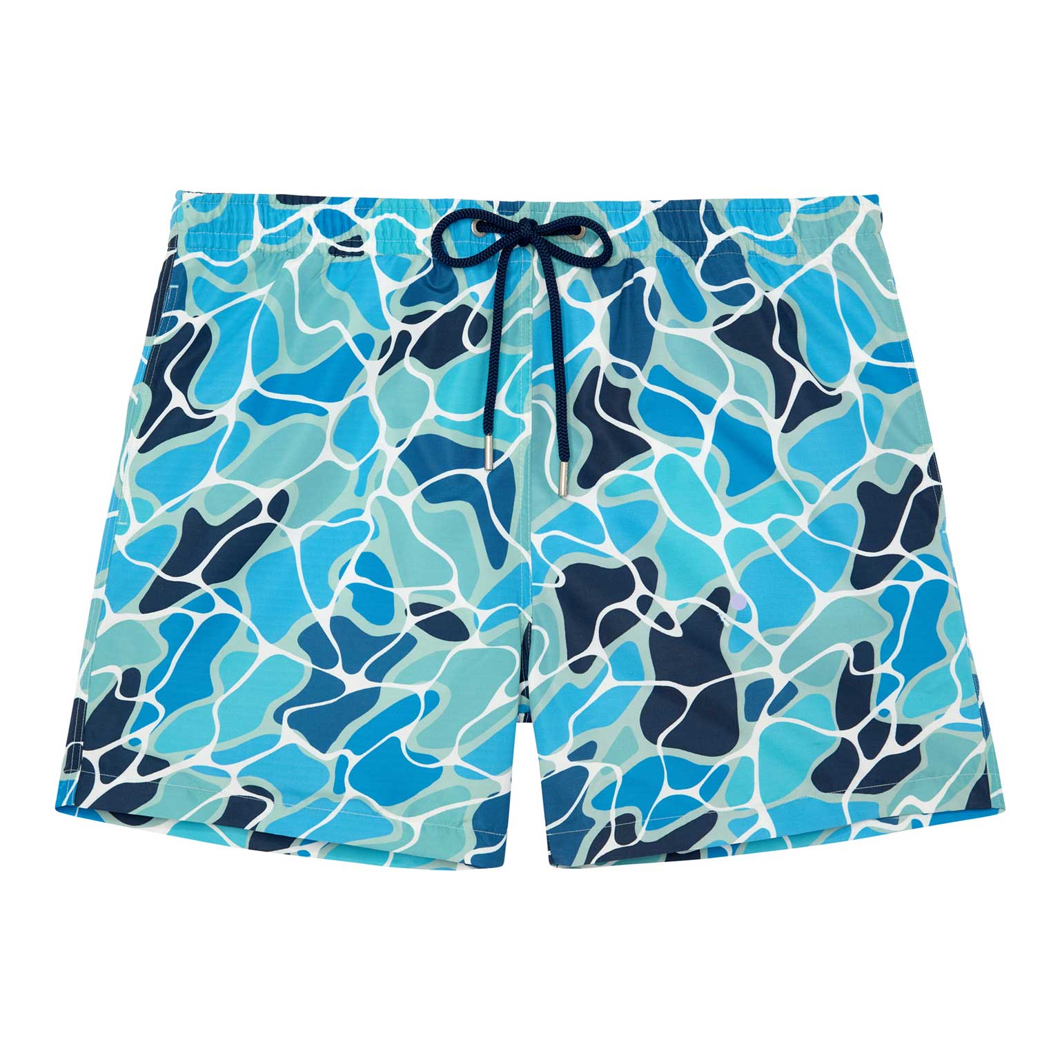 Die Alain - Beach Boxer hat einen schönen Druck in der Farbe Blau mit einem Welleneffekt. Die Beach Boxer hat Taschen am linken und rechten Saum und verfügt über Innenshorts für zusätzlichen Komfort und Halt. Mit dem Kordelzug im Bund können Sie die Beach Boxer auf die perfekte Größe einstellen, so dass Sie mit Zuversicht ein erfrischendes Bad nehmen können. Der Stoff besteht aus Polyester, wodurch die Beach Boxer schnell trocknet. Ideal für den Strand oder wenn Sie danach auf die Terrasse gehen wollen.