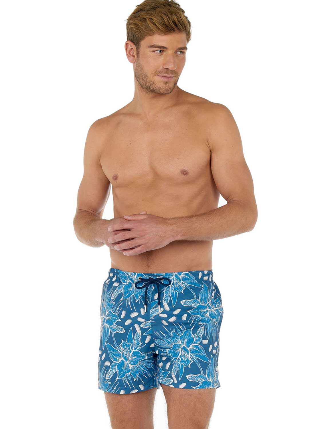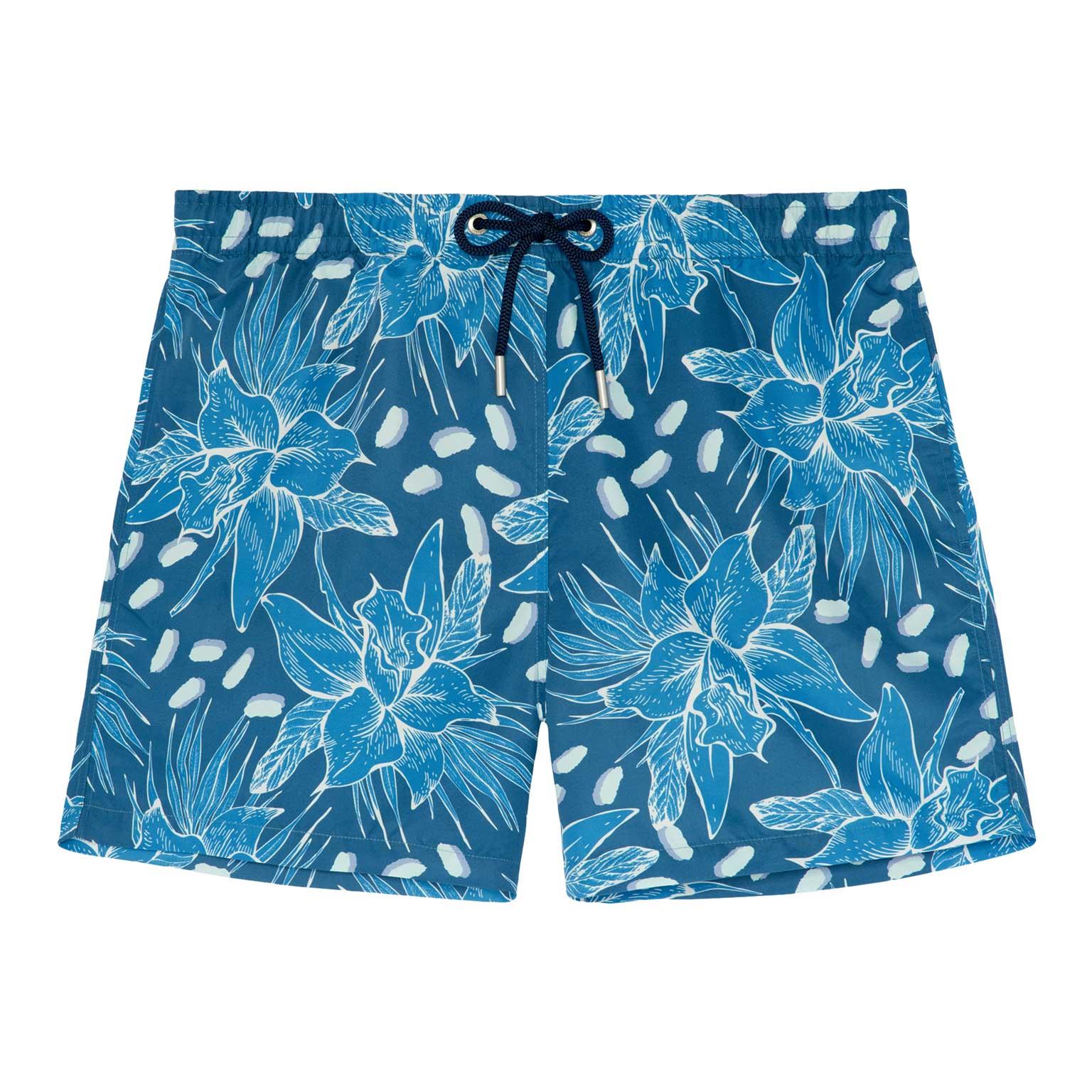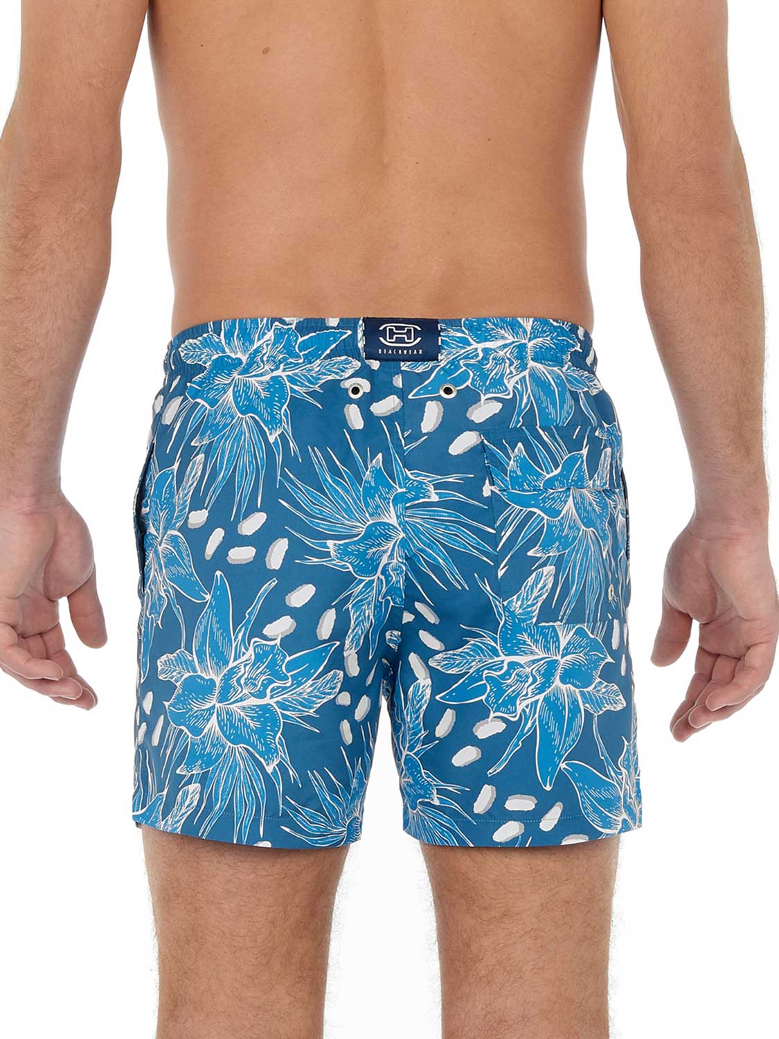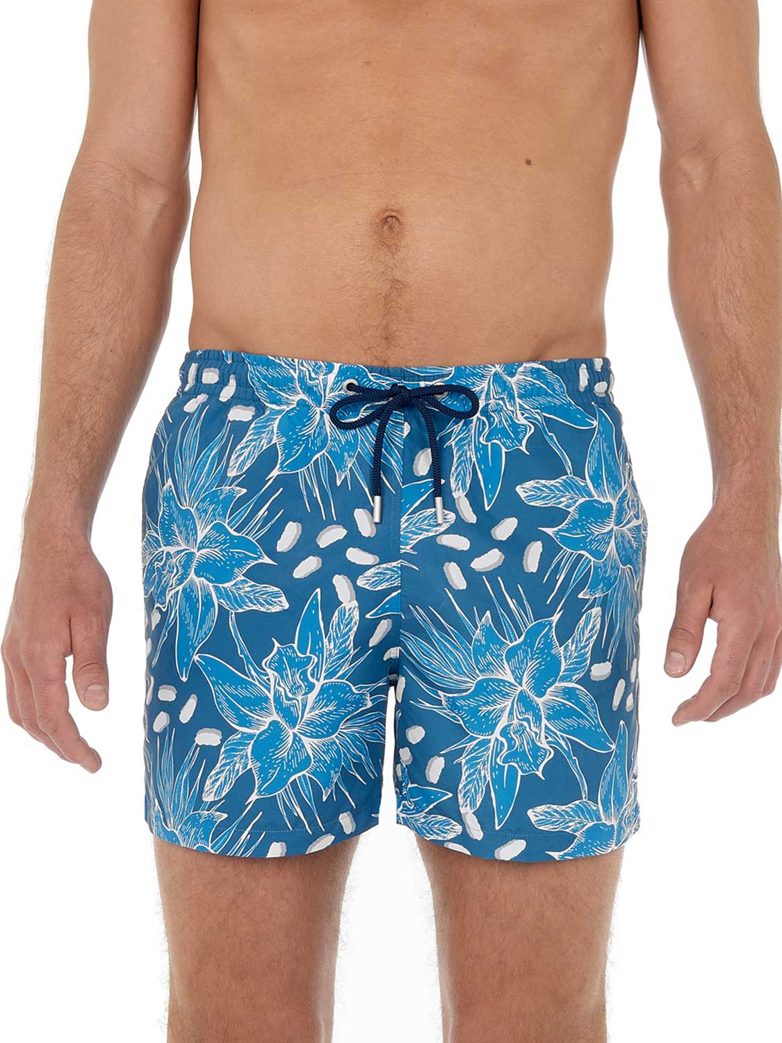 Die Moorea - Beach Boxer aus der HOM Sommerkollektion hat einen wunderschönen tropischen Blumendruck in der Farbe Blau. Die Beach Boxer verfügt über Innenshorts für zusätzlichen Halt und Komfort und hat Seitentaschen auf der linken und rechten Seite. Mit dem Kordelzug im Bund lässt sich die Beach Boxer auf die perfekte Größe einstellen, so dass Sie mit gutem Gewissen ein erfrischendes Bad nehmen können. Der Stoff besteht aus Polyester, wodurch die Beach Boxer schnell trocknet. Ideal für den Strand oder wenn Sie danach auf die Terrasse gehen wollen.