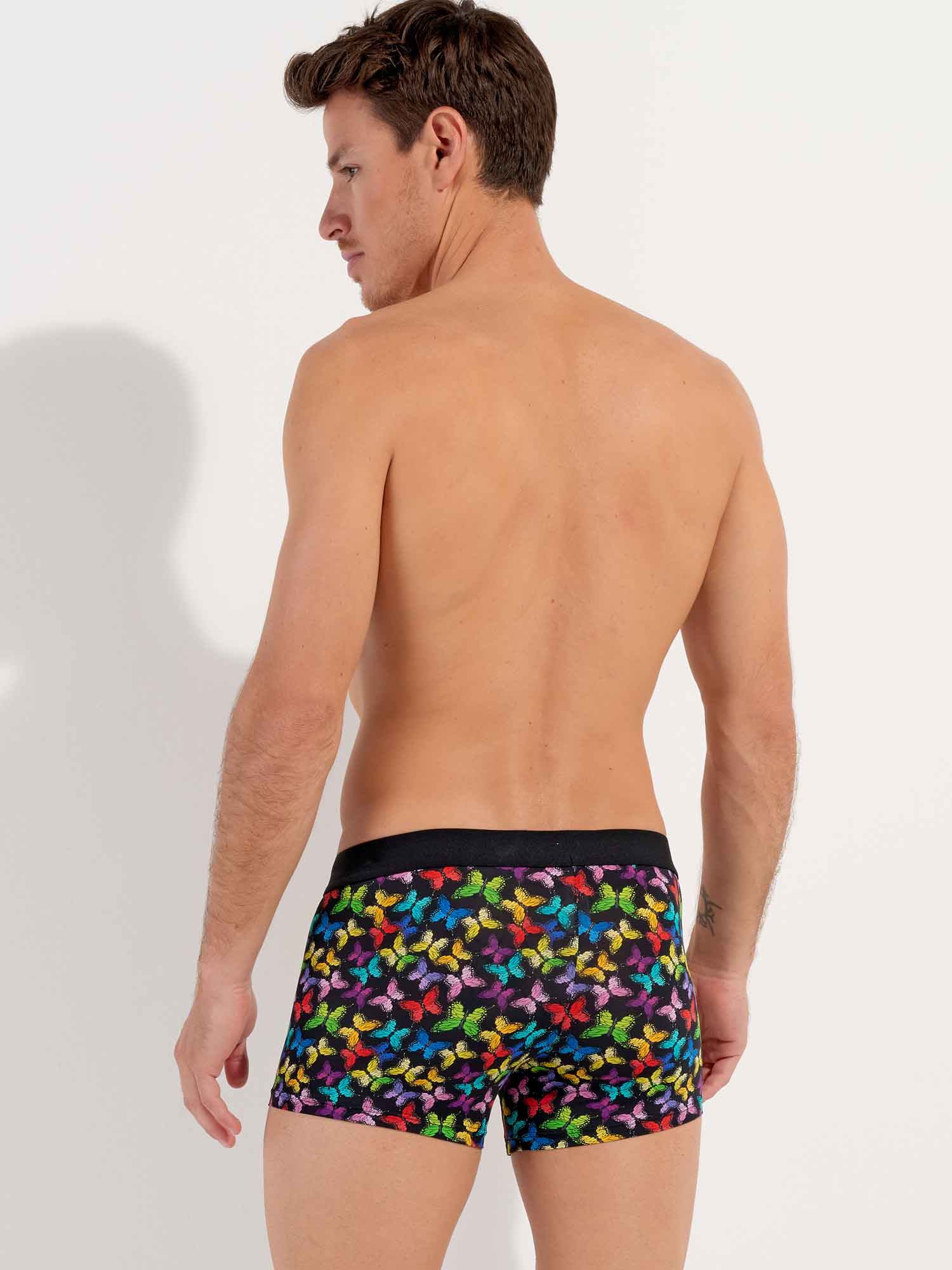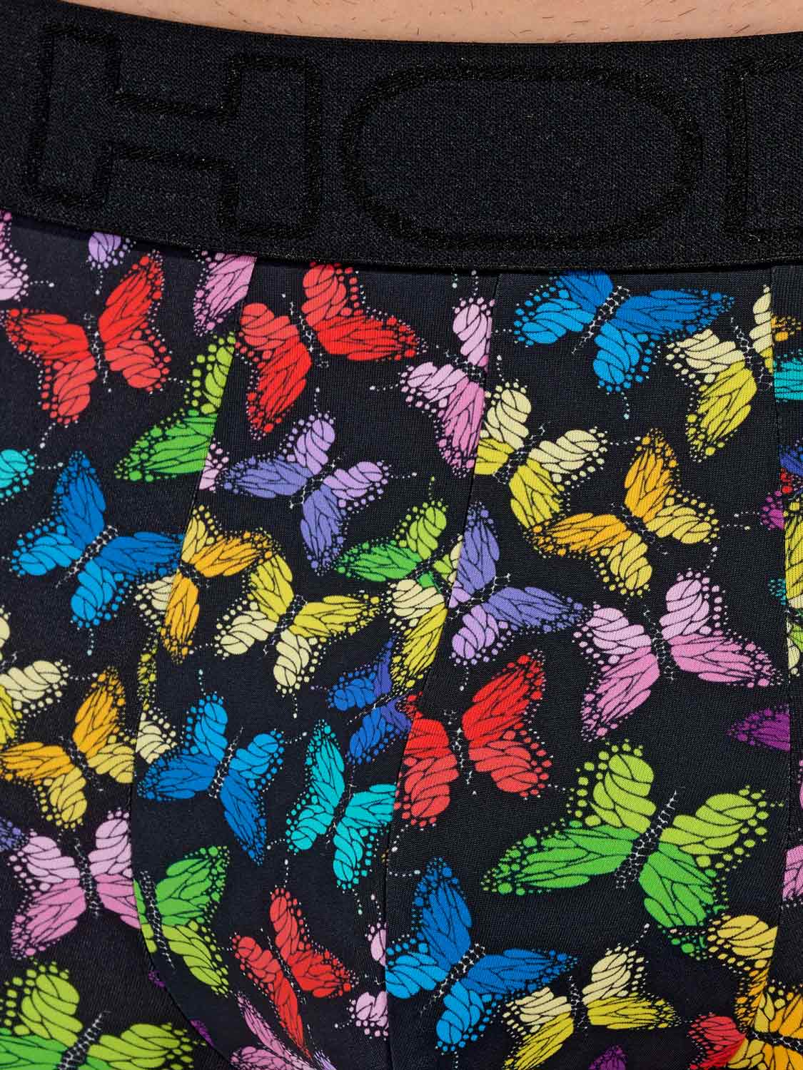Die Butterfly - Boxer Briefs bestehen aus einem bequemen Mikrofaserstoff. Diese Herren-Boxershorts zeichnen sich durch einen auffälligen, figurativen Druck mit bunten Schmetterlingen auf schwarzem Hintergrund aus. Die Butterfly hat einen elastischen Baumwollbund mit dem HOM-Logo in Ton-in-Ton.