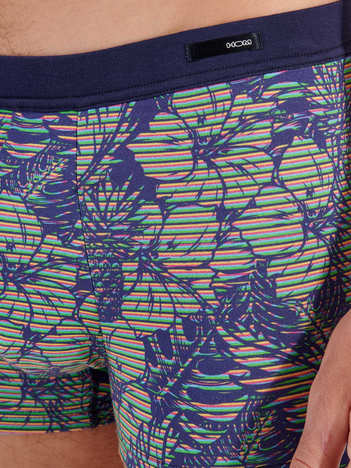 Der Callum - Comfort Boxer Briefs ist aus hochwertigem Baumwoll-Modal gefertigt, das äußerst bequem ist und sich weich anfühlt. Dieser Boxerslip für Männer hat einen schönen Blumendruck auf einem gestreiften Hintergrund in verschiedenen Farben. Der Callum verfügt über einen Komfortbund, bei dem der Stoff über das elastische Band gestülpt ist und so für zusätzlichen Komfort sorgt. Ein kleines HOM-Etikett befindet sich auf der linken Seite des Komfortbundes.