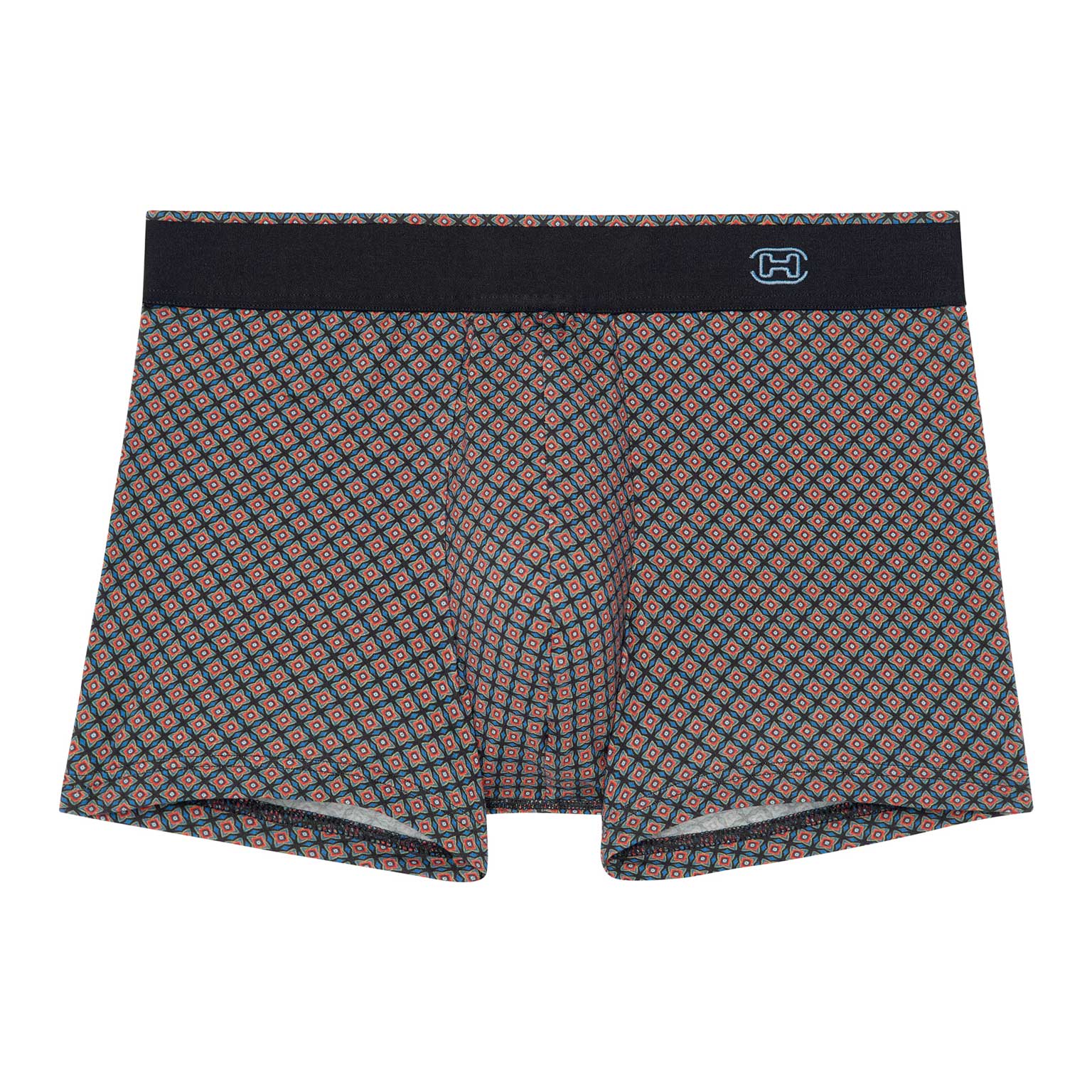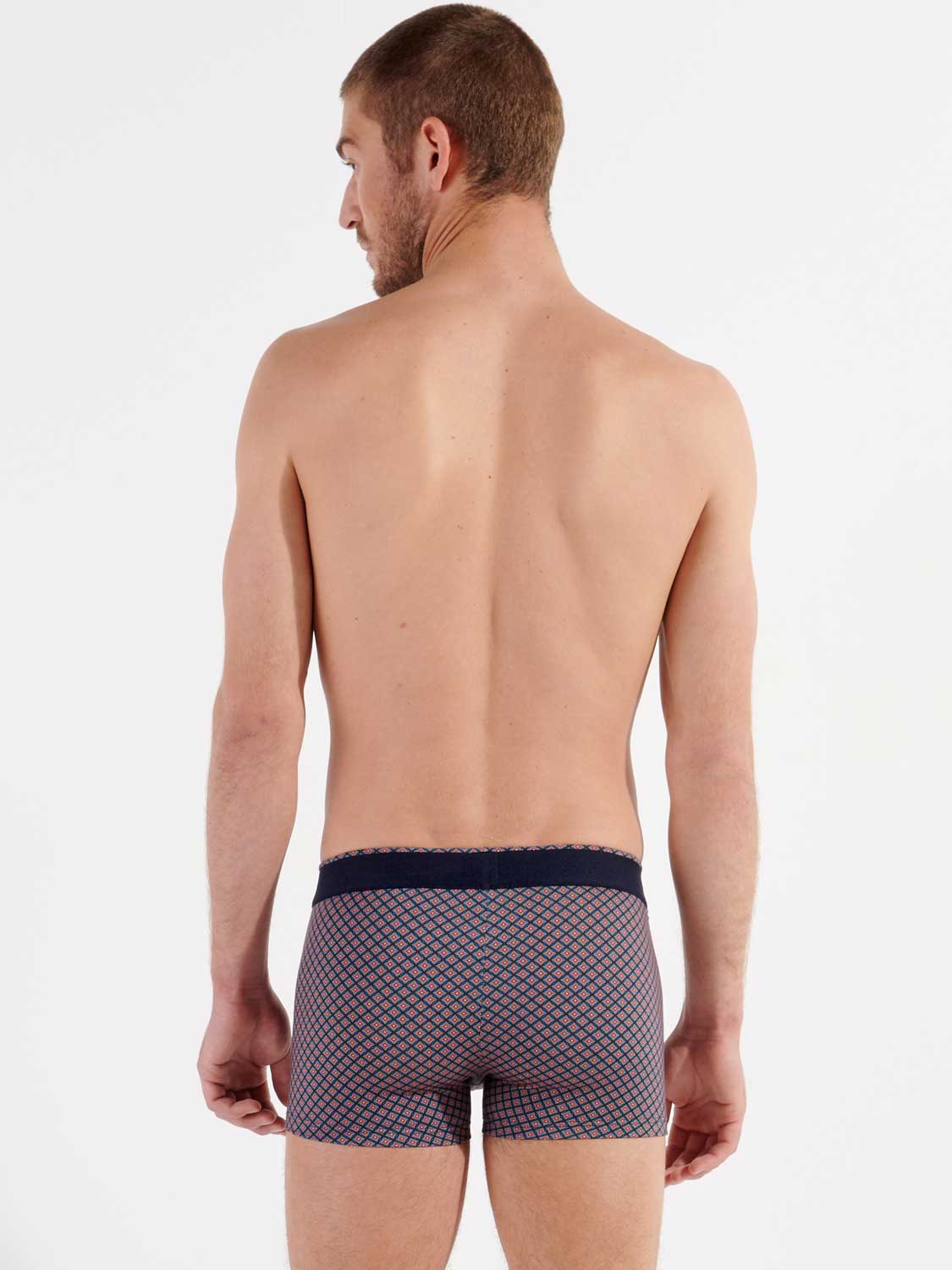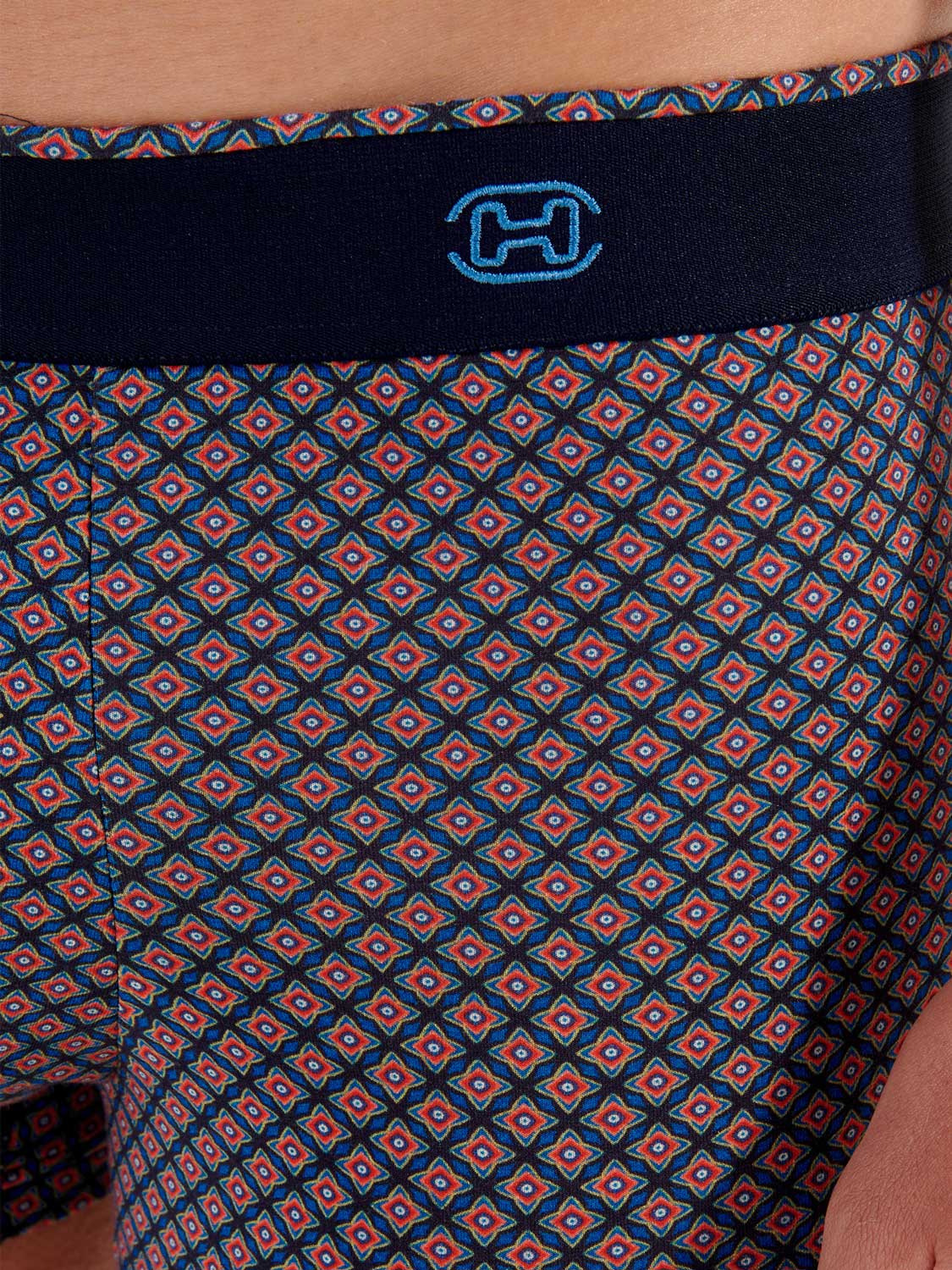 Der Jordan - Boxerslip ist aus hochwertigem Baumwoll-Modal gefertigt, einem natürlichen Stoff, der sich wunderbar weich anfühlt. Dieser Boxerslip für Männer hat einen auffälligen Druck mit einem Karomuster in warmen Farbtönen auf marineblauem Hintergrund. Die Boxershorts hat einen Komfortbund, wobei der Stoff über den elastischen Bund gezogen wird, was für zusätzlichen Komfort und einen modischen Look sorgt. Der Bund ist unifarben in Marineblau mit dem gestickten HOM-Logo auf der linken Vorderseite.