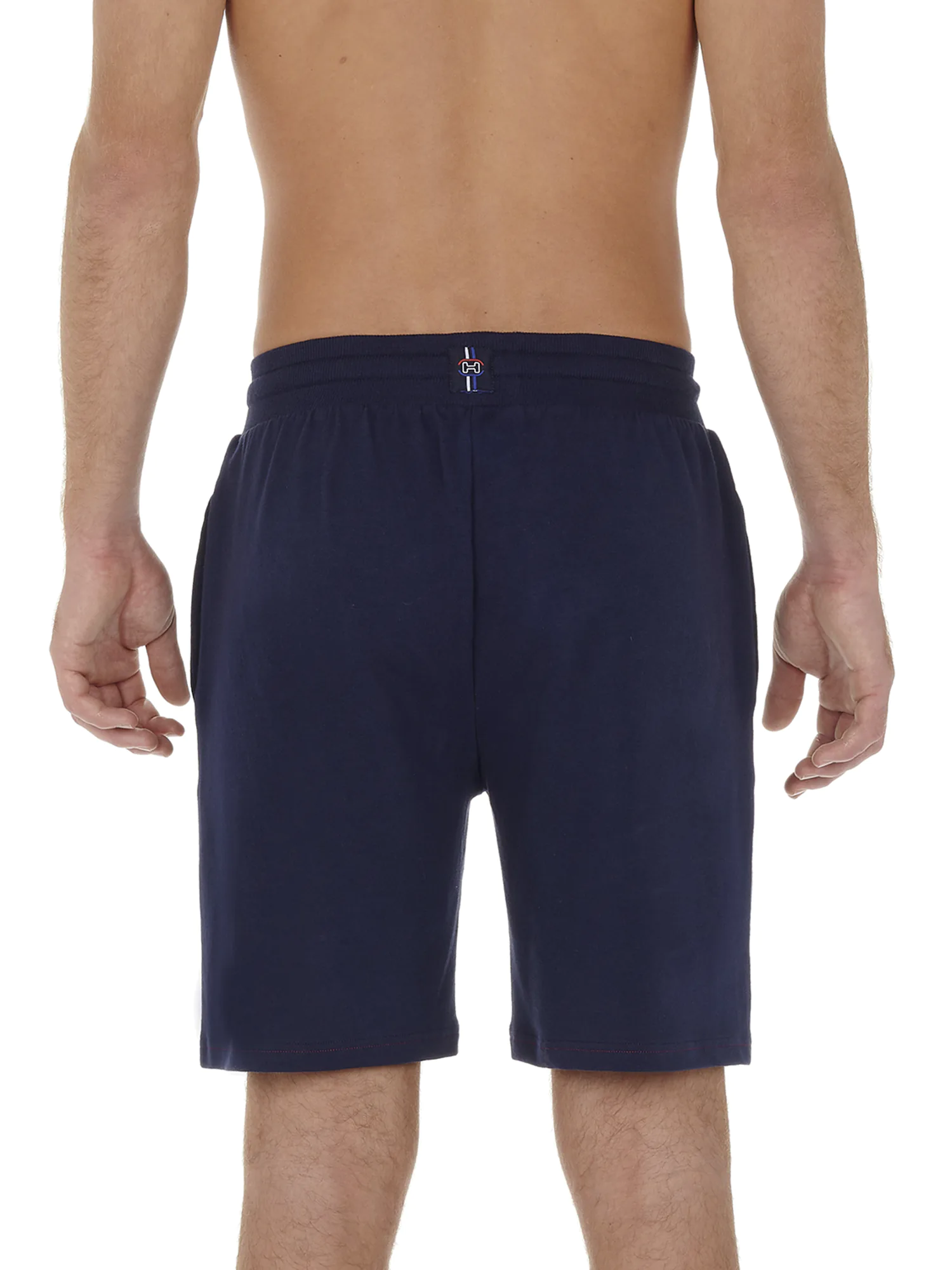 Die Sport Lounge-Serie ist die ideale Serie zum Entspannen, besonders nach einem langen Training. Der Stoff besteht aus einem weichen, bequemen und stylischen Fleece. Die Sport Lounge Serie besteht aus einer Short, einer Jogger Sweat Pants und einem Sweater, die separat kombiniert werden können. Die Sport Lounge ist in den Farben melange grau und navy blau erhältlich. Der Fleece besteht aus 100% Baumwolle und ist somit perfekt für den Mann, der gerne natürliche Stoffe trägt. Darüber hinaus ist Baumwolle atmungsaktiv und pflegeleicht. Diese Short ist mit Seitentaschen auf der linken und rechten Seite ausgestattet und hat einen Kordelzug im Bund für eine perfekte Passform.