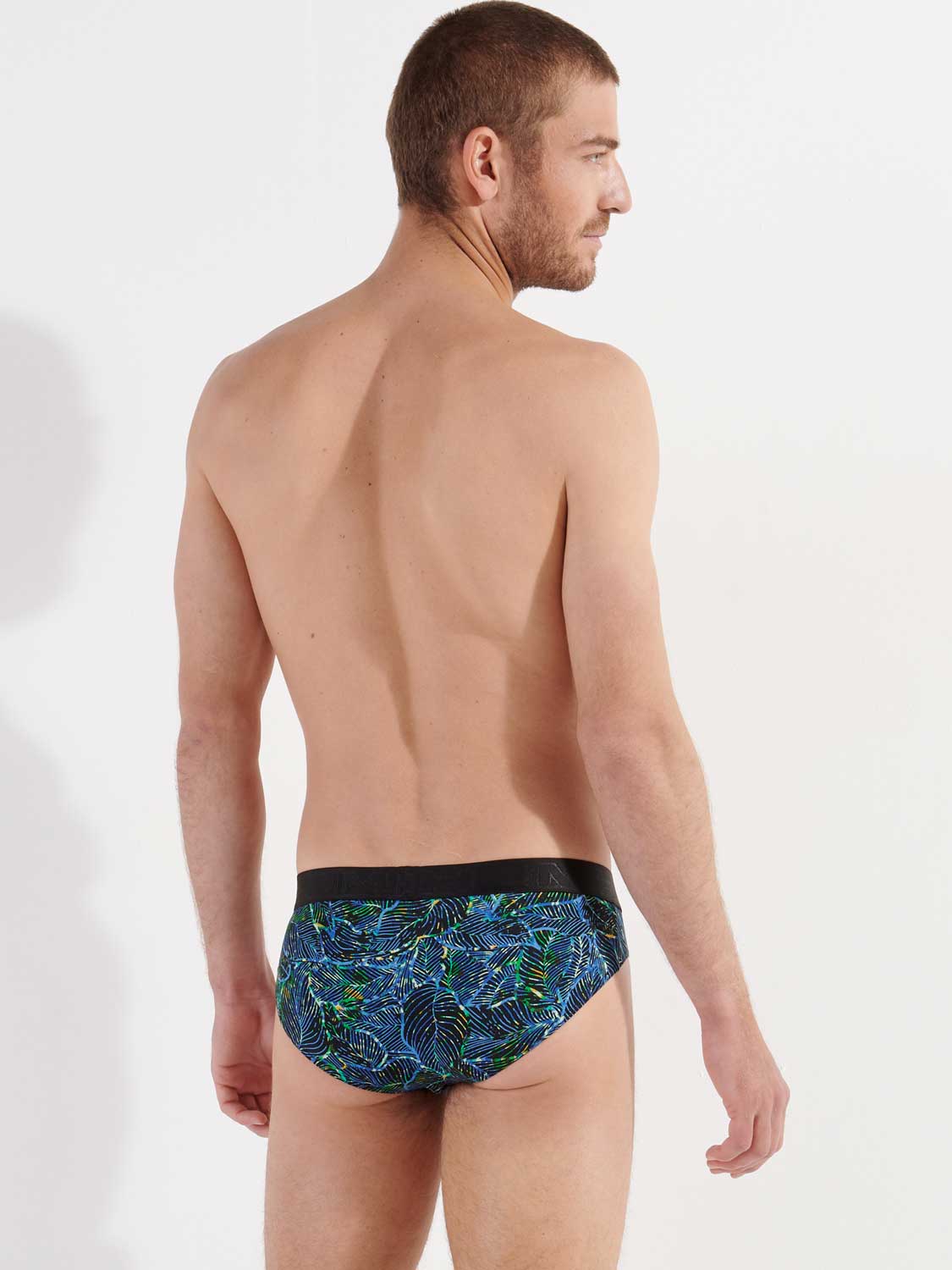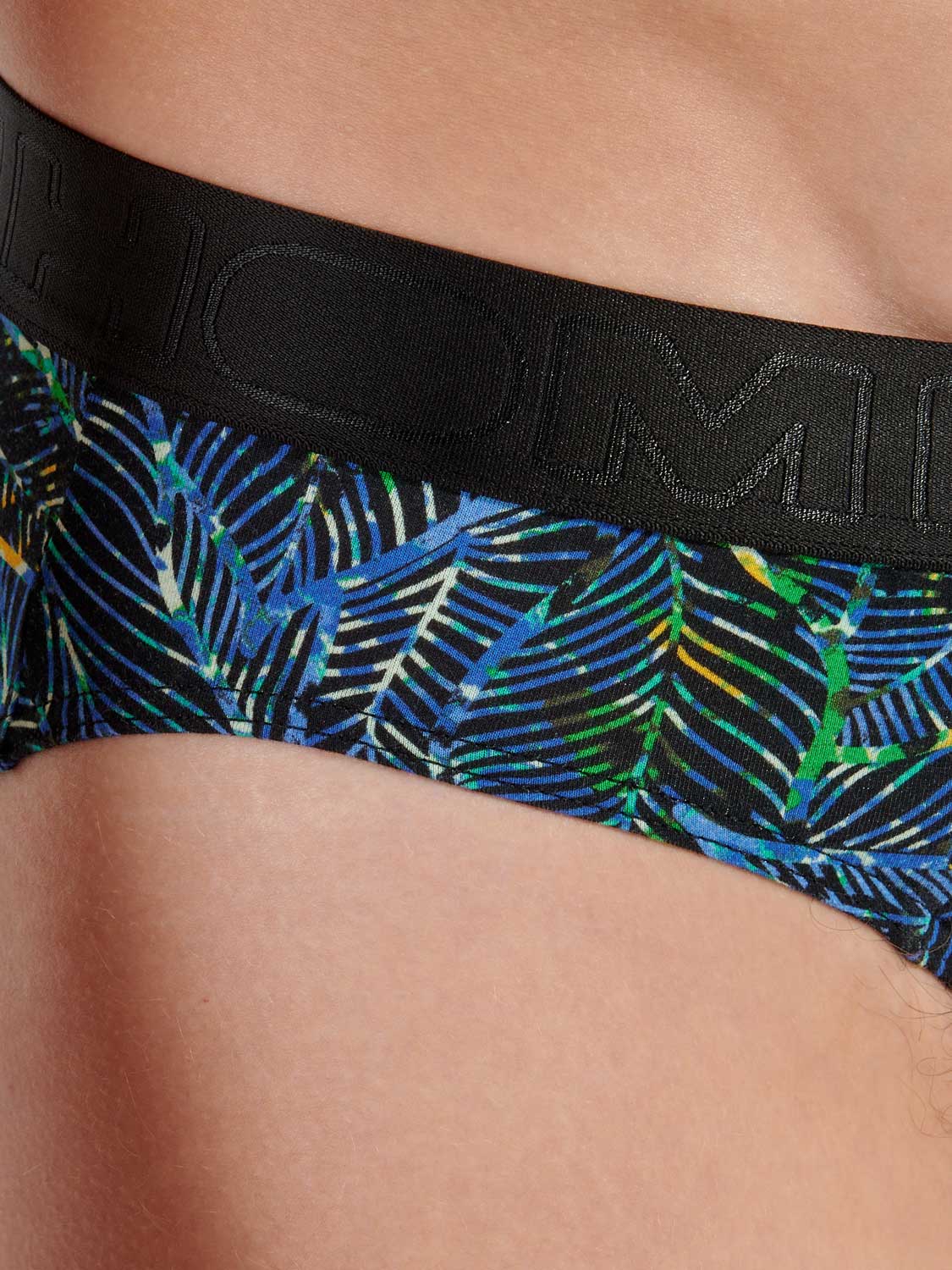 Der Jarrod - Mini Slip ist aus hochwertigem Baumwoll-Modal gefertigt und fühlt sich daher weich und angenehm am Körper an. Der Herrenslip hat einen auffälligen Vegetationsprint in leuchtenden Farben auf schwarzem Grund. Der schwarze, elastische Bund ist rundum mit dem HOM-Logo Ton-in-Ton bedruckt.