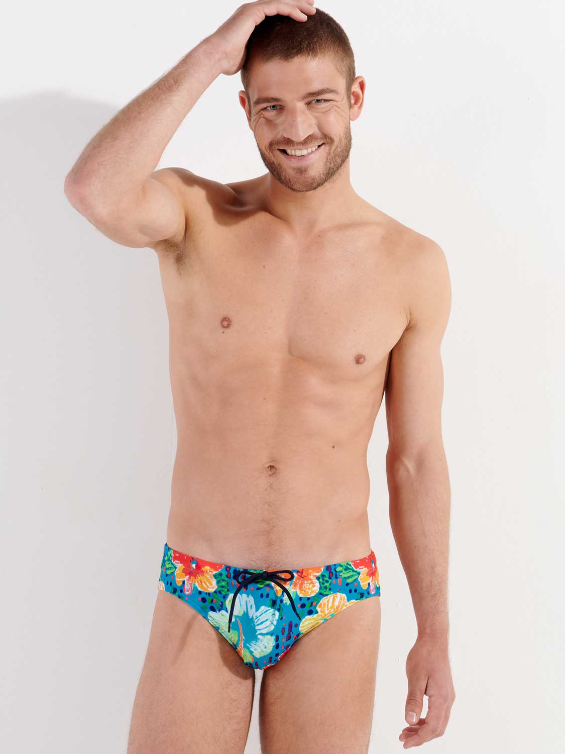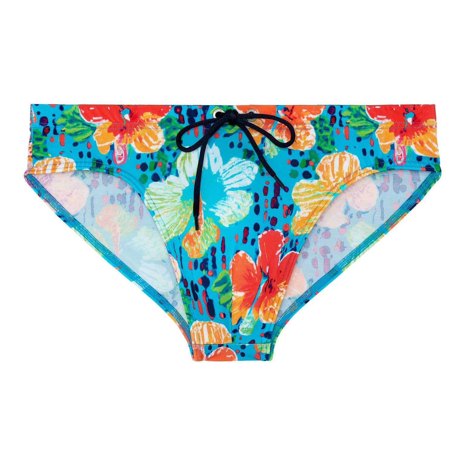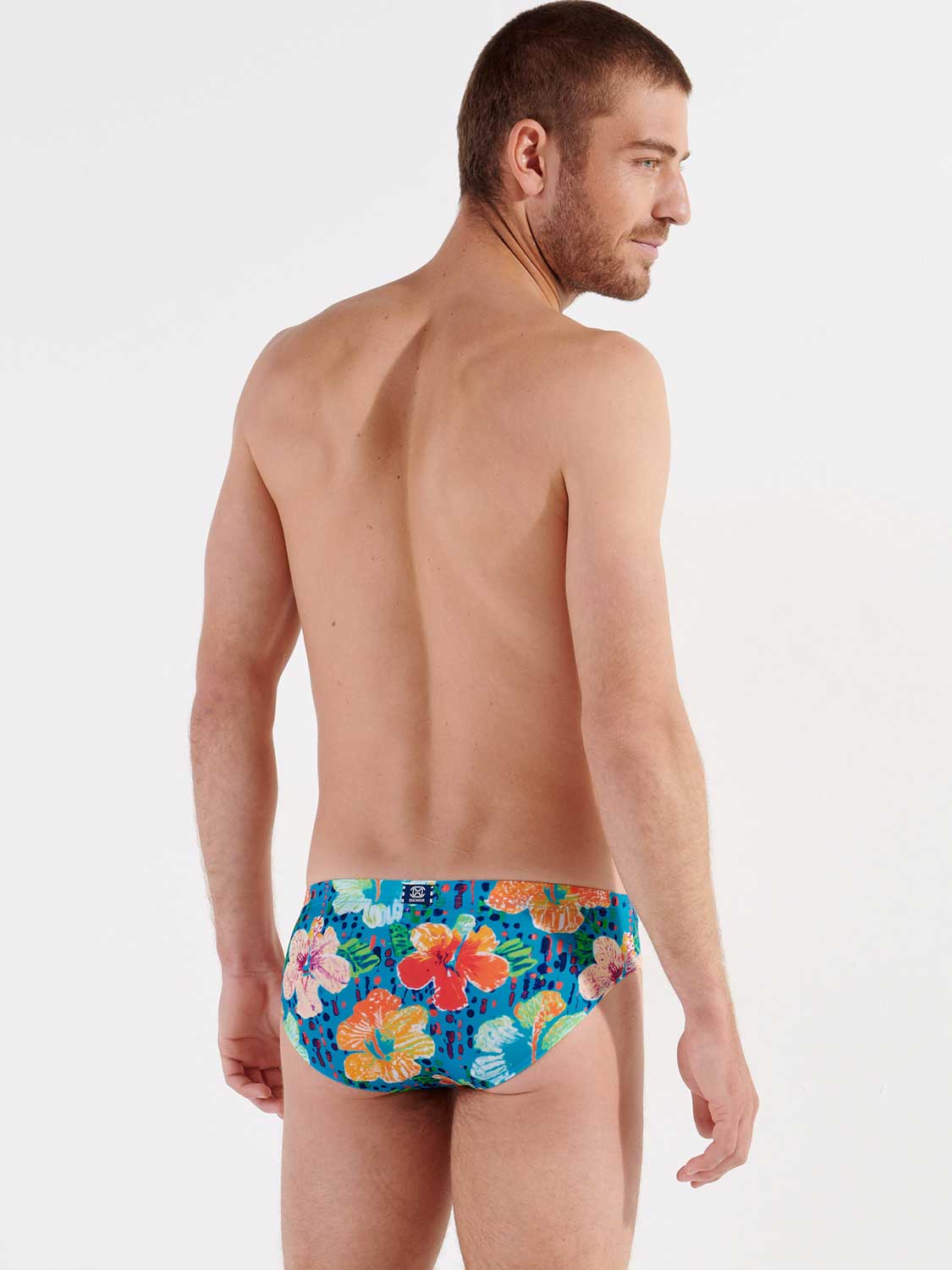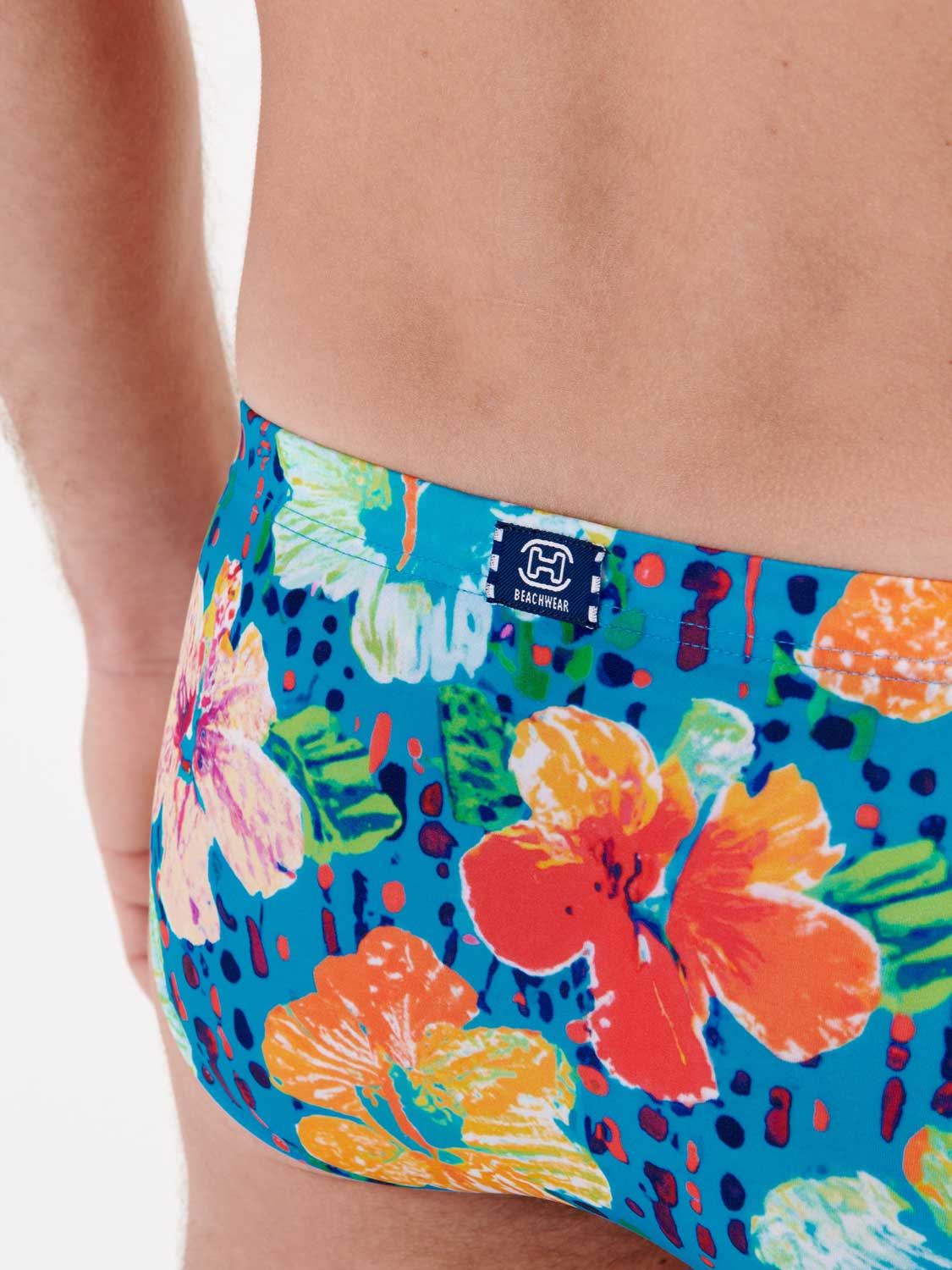 Der Dino - Swim Mini Slip hat einen sommerlichen, farbenfrohen Look mit seinem auffälligen Blumendruck auf türkisfarbenem Hintergrund. Der Stoff ist elastisch, liegt gut auf der Haut und scheint nicht durch. Da es sich um einen Mini-Slip handelt, trägt man ihn weiter oben auf der Hüfte. Der Kordelzug im Bund ermöglicht es Ihnen, die Badehose auf Ihre Größe einzustellen. Mit diesem modischen Teil bringen Sie ein bisschen gute Laune an den Strand oder ins Schwimmbad.