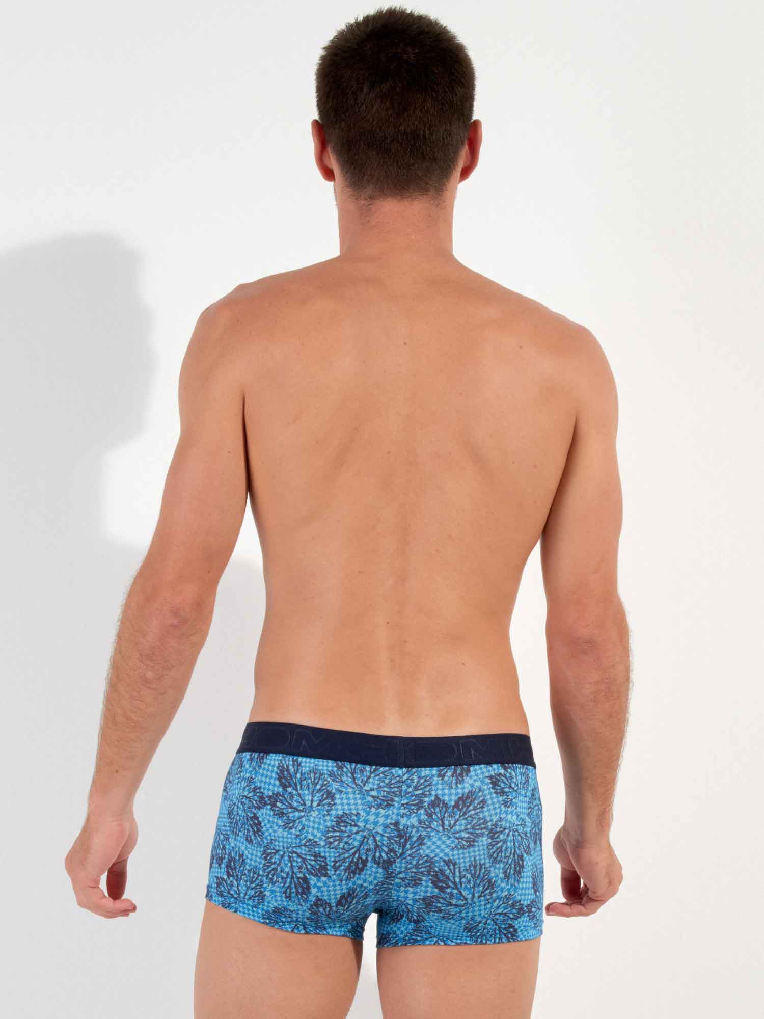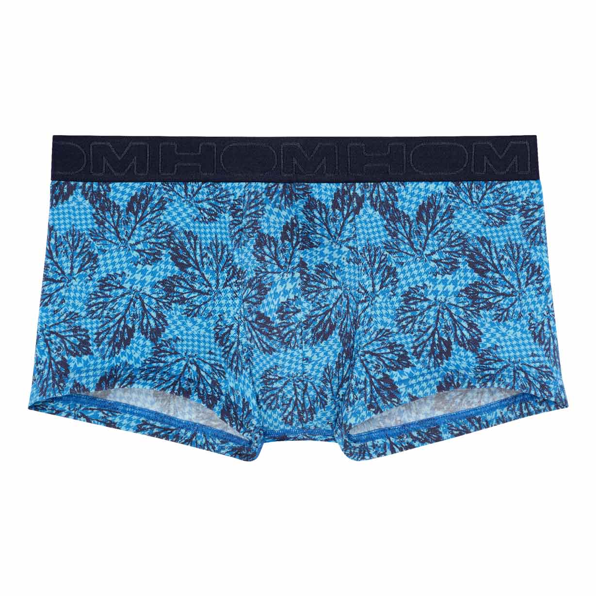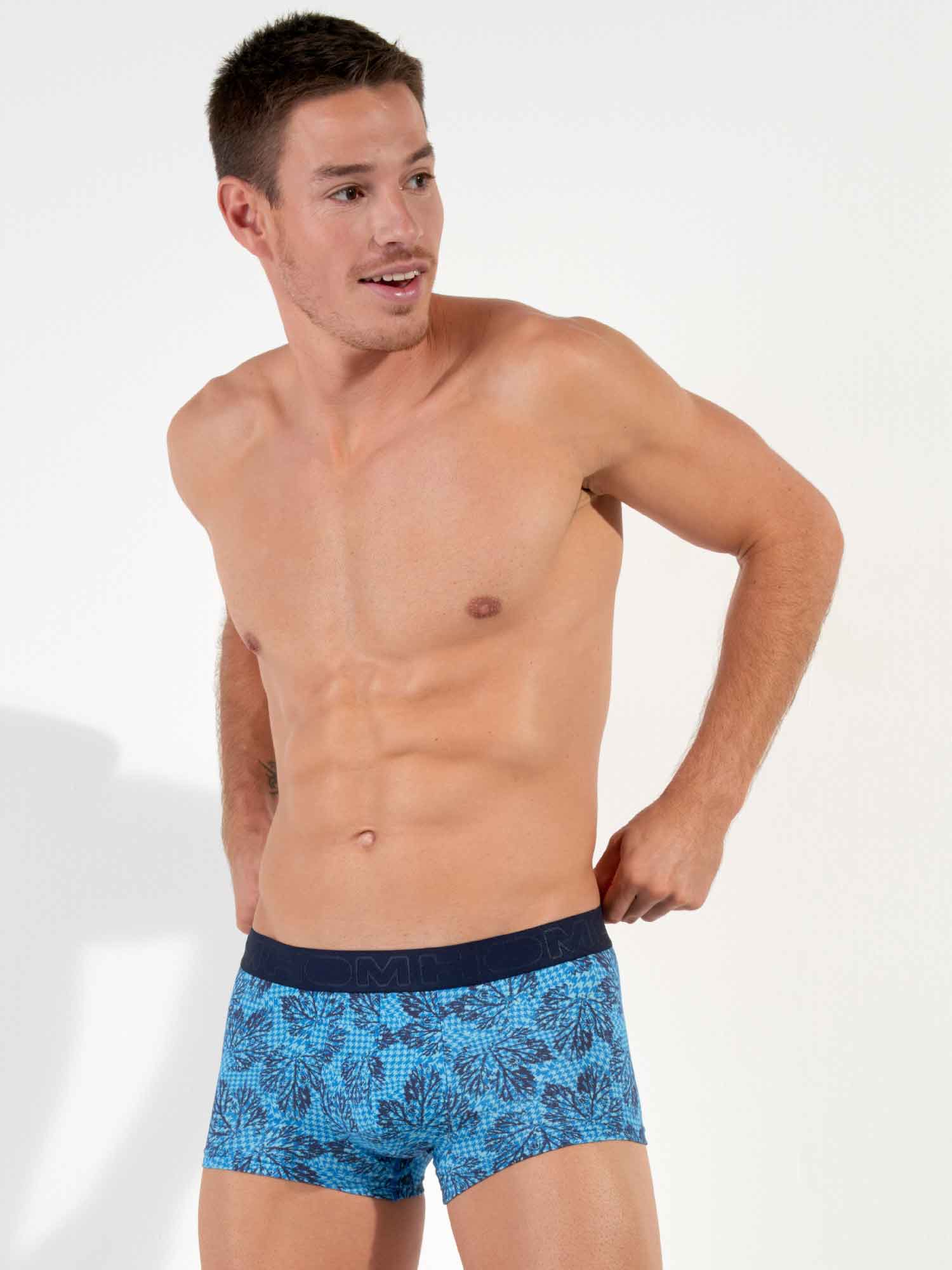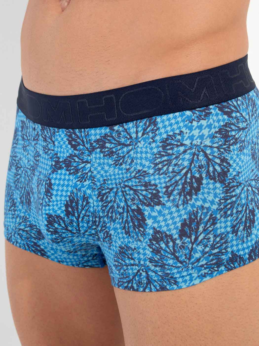Die Douro - Trunks bestehen aus hochwertiger Baumwoll-Modal-Mischung, wodurch sie weich und angenehm auf der Haut liegen. Der Douro verfügt über einen auffälligen Pflanzenprint in Marineblau auf einem hellblauen Hintergrund. Der elastische Bund ist rundum mit dem HOM-Logo in Ton-in-Ton gestaltet. Das Trunk-Modell sitzt tiefer auf den Hüften als eine normale Boxershorts und hat kurze Beine für einen modischen Look.