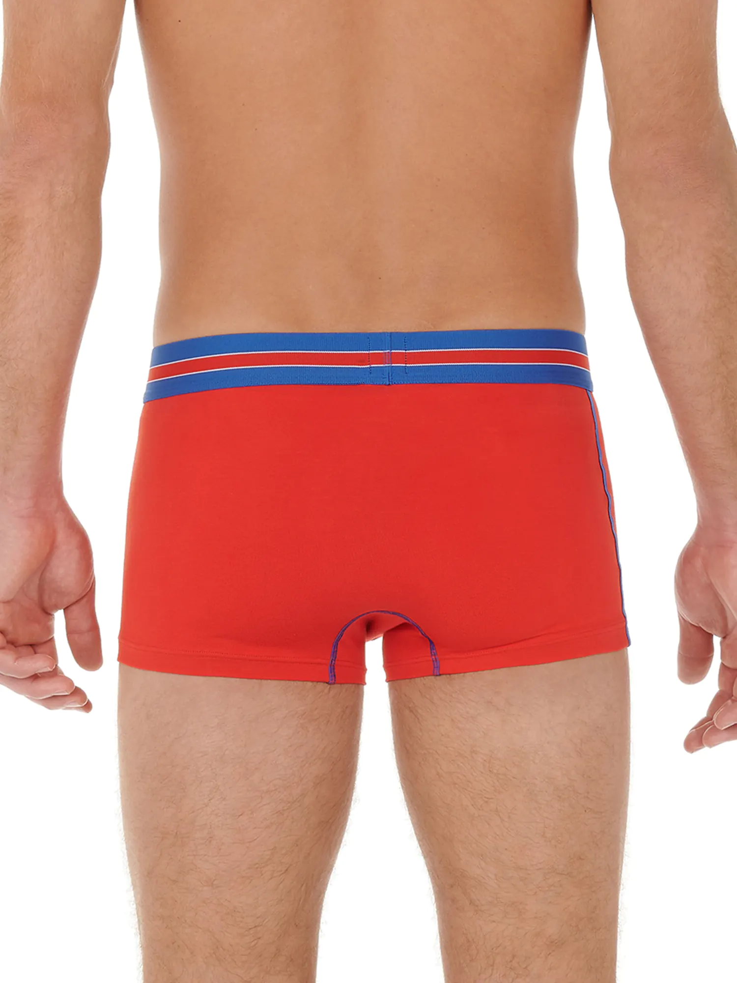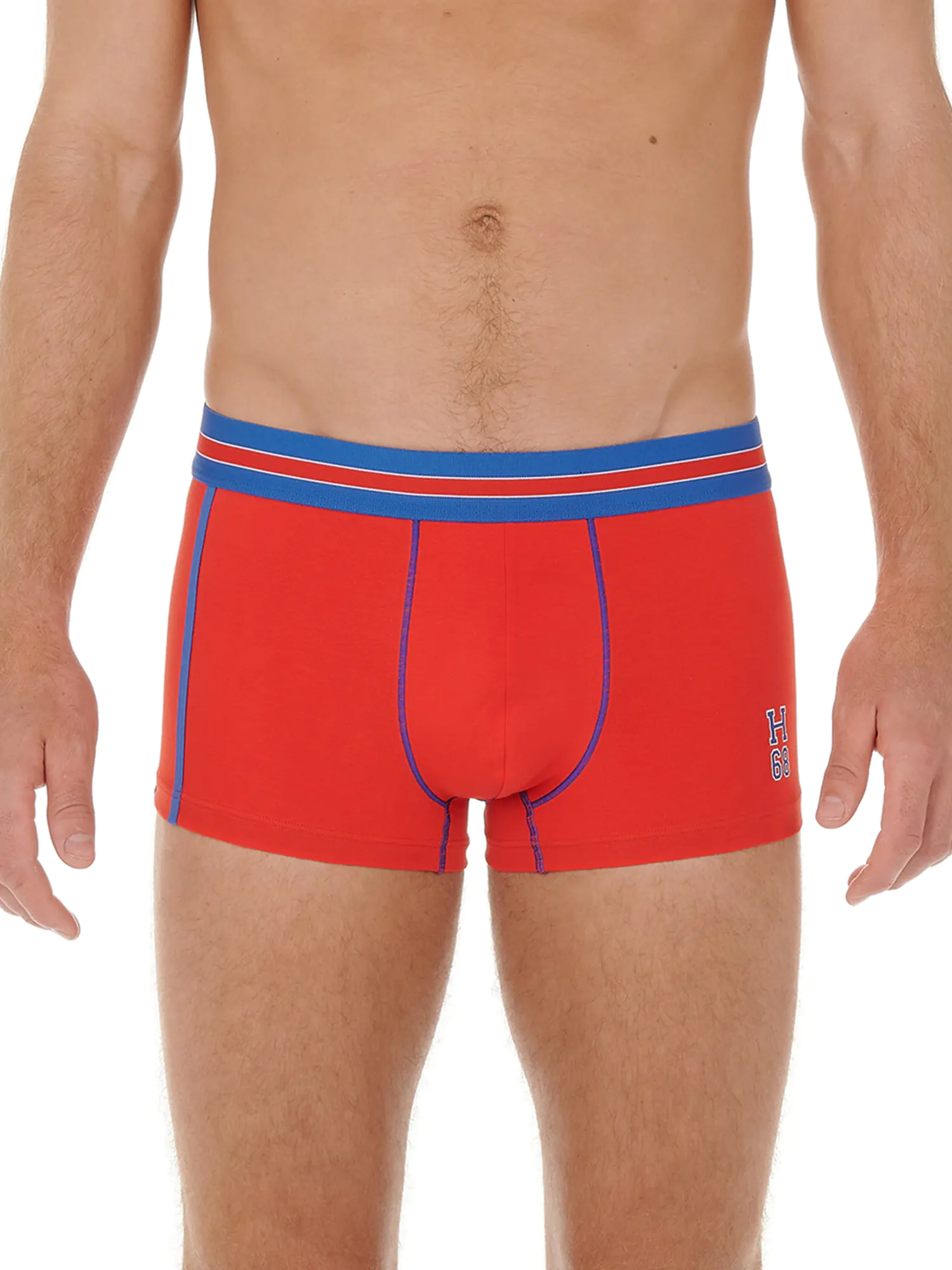 Die HOMrun - Trunk ist die Sportboxer der Saison, hergestellt aus einer neuen Baumwollstoffzusammensetzung, die das Wachstum von Bakterien verhindert und somit die Hygiene verbessert. Die HOMrun hat einen auffälligen Retro-Look in leuchtenden Farben mit Linien entlang des Beutels und der Seite und über den elastischen Bund. Die Tie Break ist eine Boxershort mit kurzem Bein, die bei jeder Aktivität getragen werden kann. Ein HOM-Emblem befindet sich vorne links am Bein.