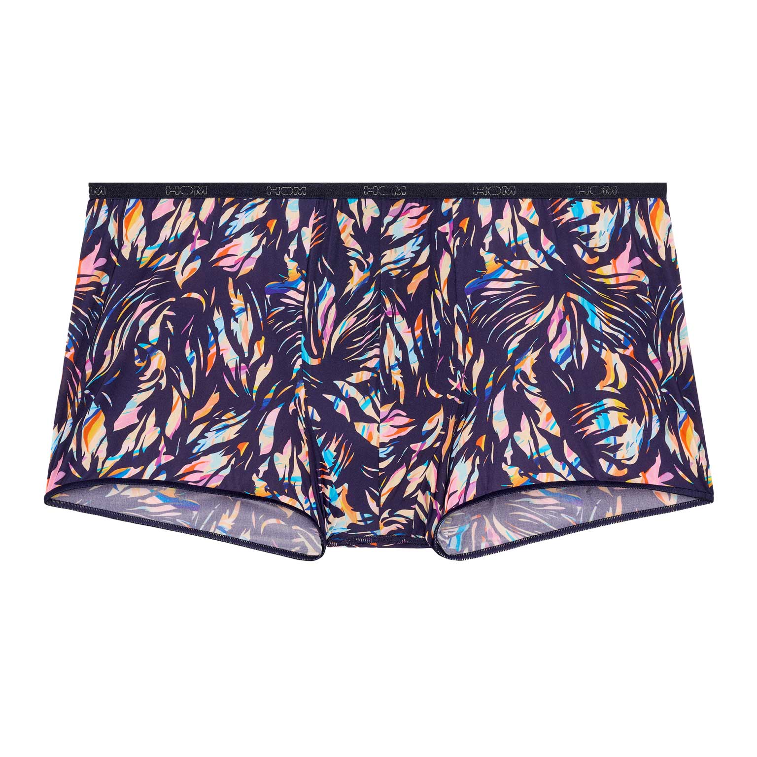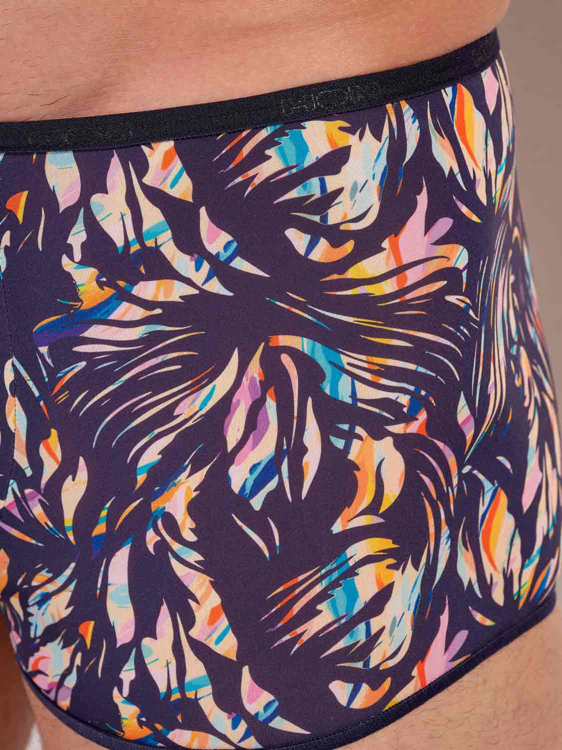 Der HOM Viscaye Trunk verbindet die elegante Ästhetik der Temptation Kollektion mit einem kaum spürbaren Tragegefühl. Ein harmonisches Blumenfresko in zarten Pastelltönen auf einem satten Navy-Grund wirkt fein und exotisch, bleibt dabei aber mühelos maskulin. Dank ultra-dünner Mikrofaser sitzt der Trunk wie eine zweite Haut und bleibt durch weiche elastische Kanten angenehm glatt. Das Ergebnis ist ein Modell, das unter eng anliegender Kleidung nahezu unsichtbar ist, ähnlich wie die ikonische Plumes Serie, und der Bund wird durch ein dezent eingelegtes HOM-Logo stilvoll abgerundet.