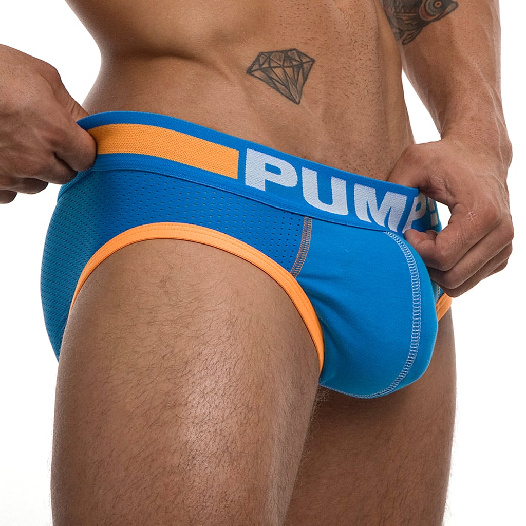 Der Cruise Brief kombiniert eine tolle Passform mit einem Vintage-Design. Der Slip von PUMP! hat einen Body aus Mesh und einen Frontcup aus weicher Baumwolle. Der Slip kommt in Blau und ist mit auffälligen neonorangen Nähten und Paspeln versehen. Der Bund hat eine Breite von 4,5 cm.