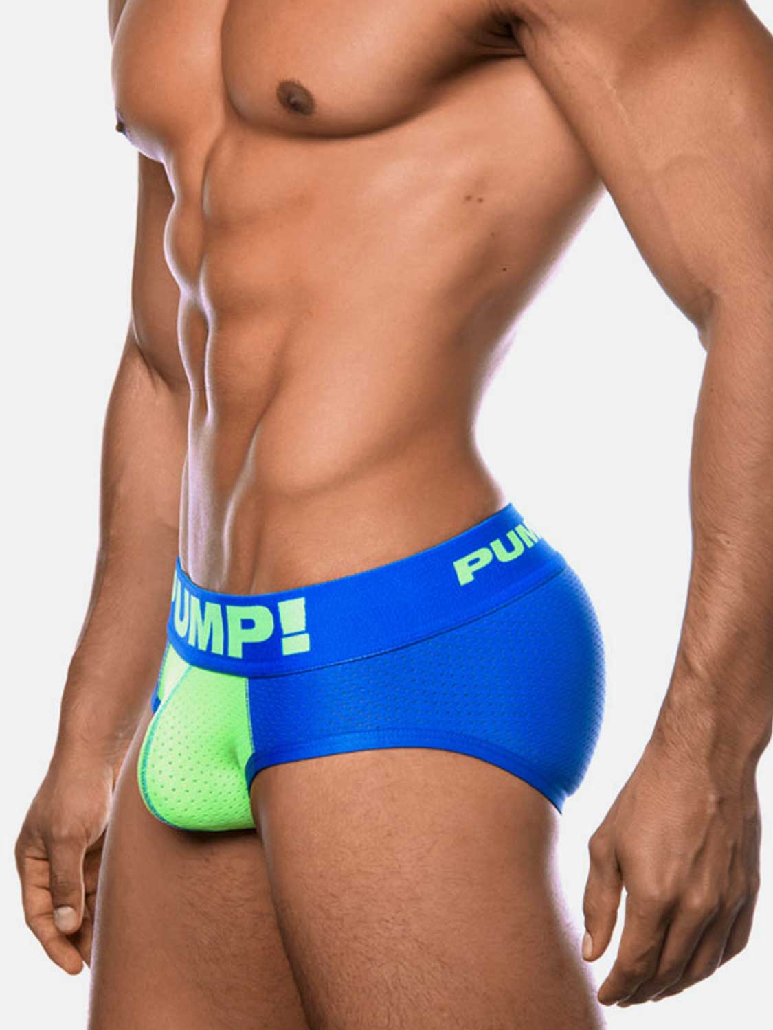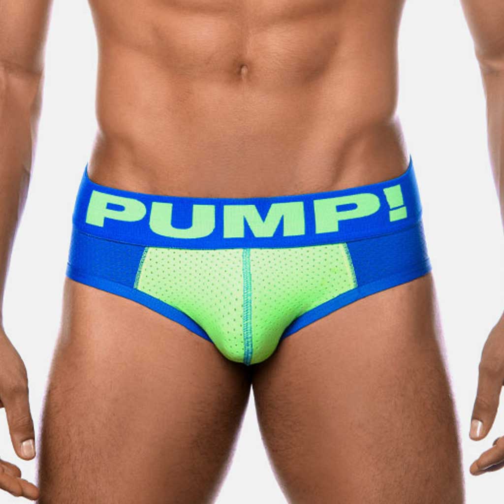 Mit dem Shockwave Brief von PUMP! in auffälligen Farben und einem Bund von nicht weniger als 5 cm stehen Sie garantiert im Rampenlicht. Der Slip ist bequem und besteht komplett aus einem Netz aus Baumwolle. In Blau mit apfelgrüner Tasse und Buchstaben am Bund.