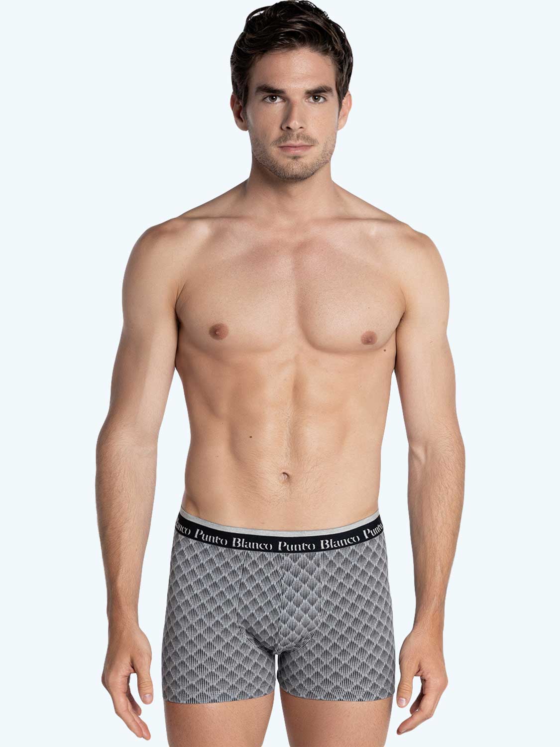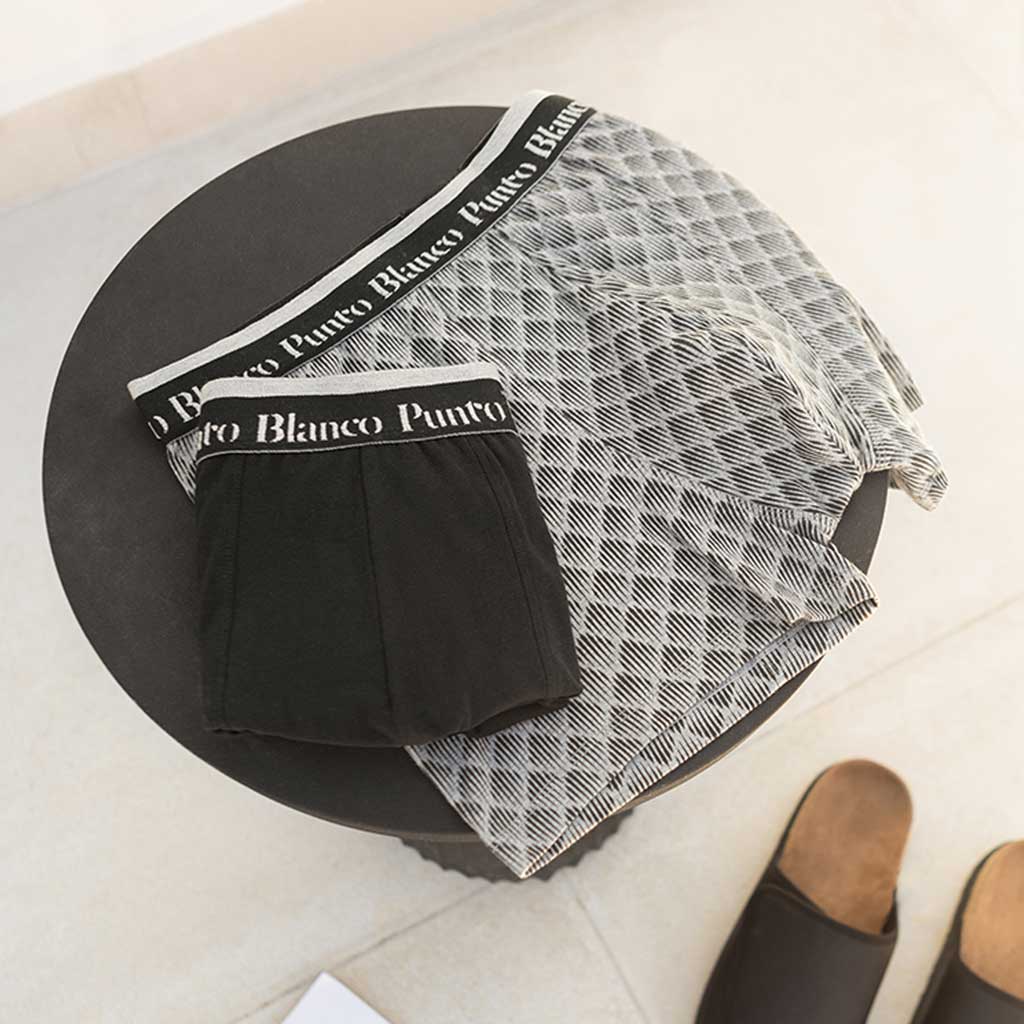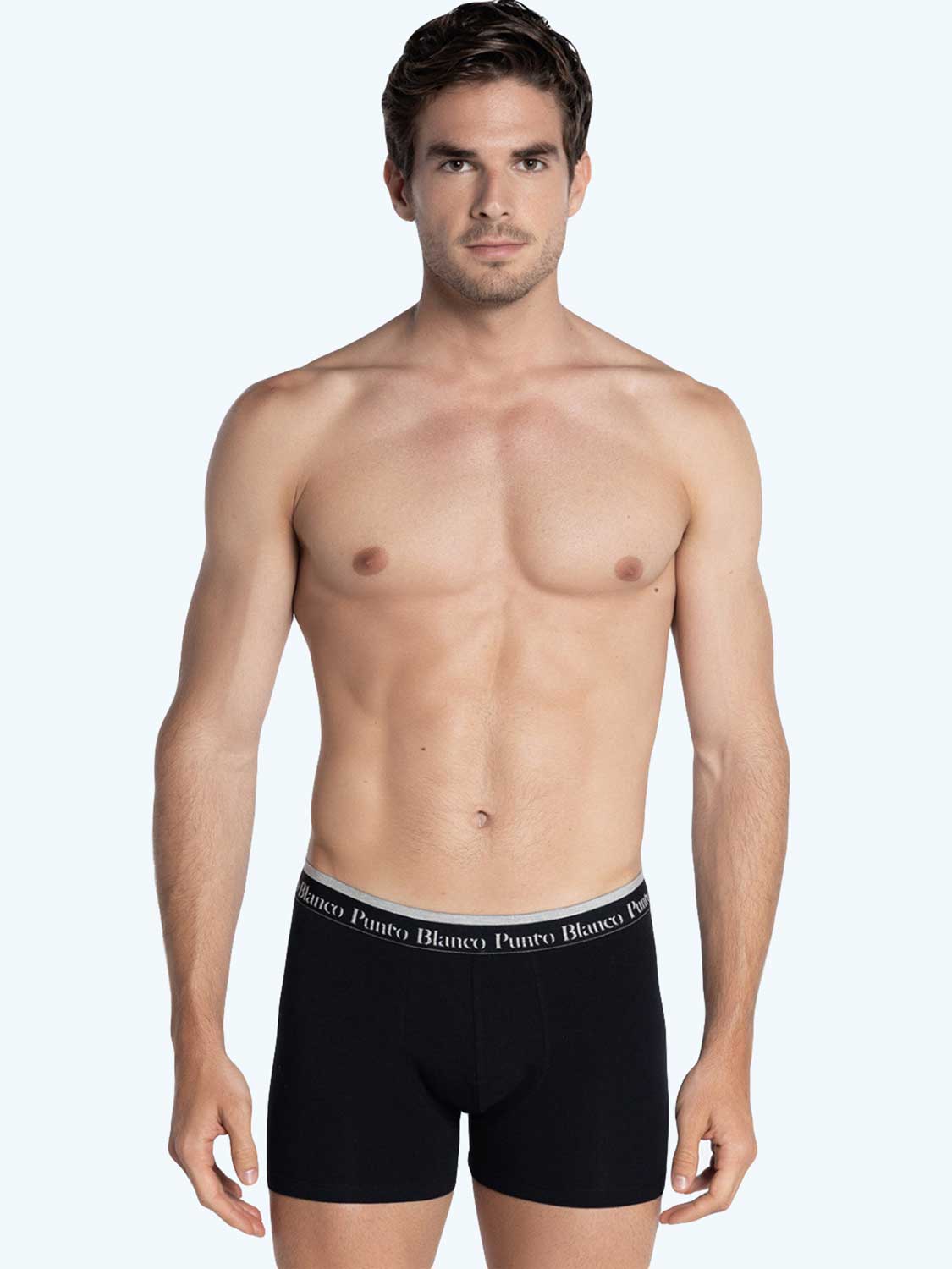 Wenn du gerne natürliche Stoffe trägst, dann liegst du mit dem Urban - Boxer Brief Set aus Bio-Stretch-Baumwolle genau richtig. Das Set besteht aus 2 Boxershorts, eine in schwarz und die andere mit einem klassischen Print in grau/schwarz. Der Bund ist rundum mit dem Punto Blanco-Logo versehen. Der Bund fühlt sich weich an und liegt angenehm auf der Haut.
