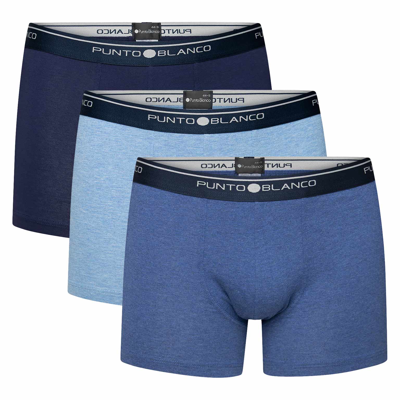 Das Basix-Sortiment steht für Einfachheit; gute Wäsche und preisgünstig. Die Basix ist schon seit Jahren im Sortiment von Punto Blanco und hat sich daher bereits überzeugend bewährt. Mit den Basix Boxershorts kaufen Sie eine gute, solide und alltagstaugliche Boxershorts. Die Basix Boxershorts sind aus 93/7-Stretch-Baumwolle gefertigt und bieten einen angenehmen Tragekomfort, der lange anhält. Dieses Vorteilspaket enthält 3 Boxershorts in verschiedenen Farbkombinationen mit einem kontrastierenden elastischen Bund, der rundum mit dem Punto Blanco-Logo versehen ist. Das Logo befindet sich nicht mittig auf der Vorderseite.