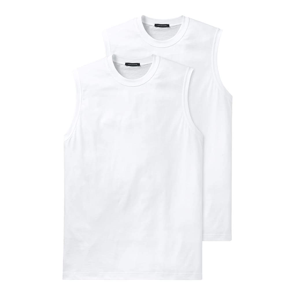 2 Basic-Shirts in einer Doppelpackung. Diese beiden Muskel-Shirts sind gut geeignet für den anspruchsvollen Herrn der einen hohen Tragekomfort wünscht und ein weiches Material auf der Haut mag. Die Shirts sind hergestellt aus 100% gekämmter Baumwolle und haben eine perfekte Paßform, die den Körper umschließt. Die Shirts sind strapazierfähig und halten lange. Sogar nach vielen Wäschen und Trocknungen im Trockner, behalten diese Shirts ihre Form. Die American Muskel-Shirts haben die bekannte Qualität, die man von SCHIESSER kennt.