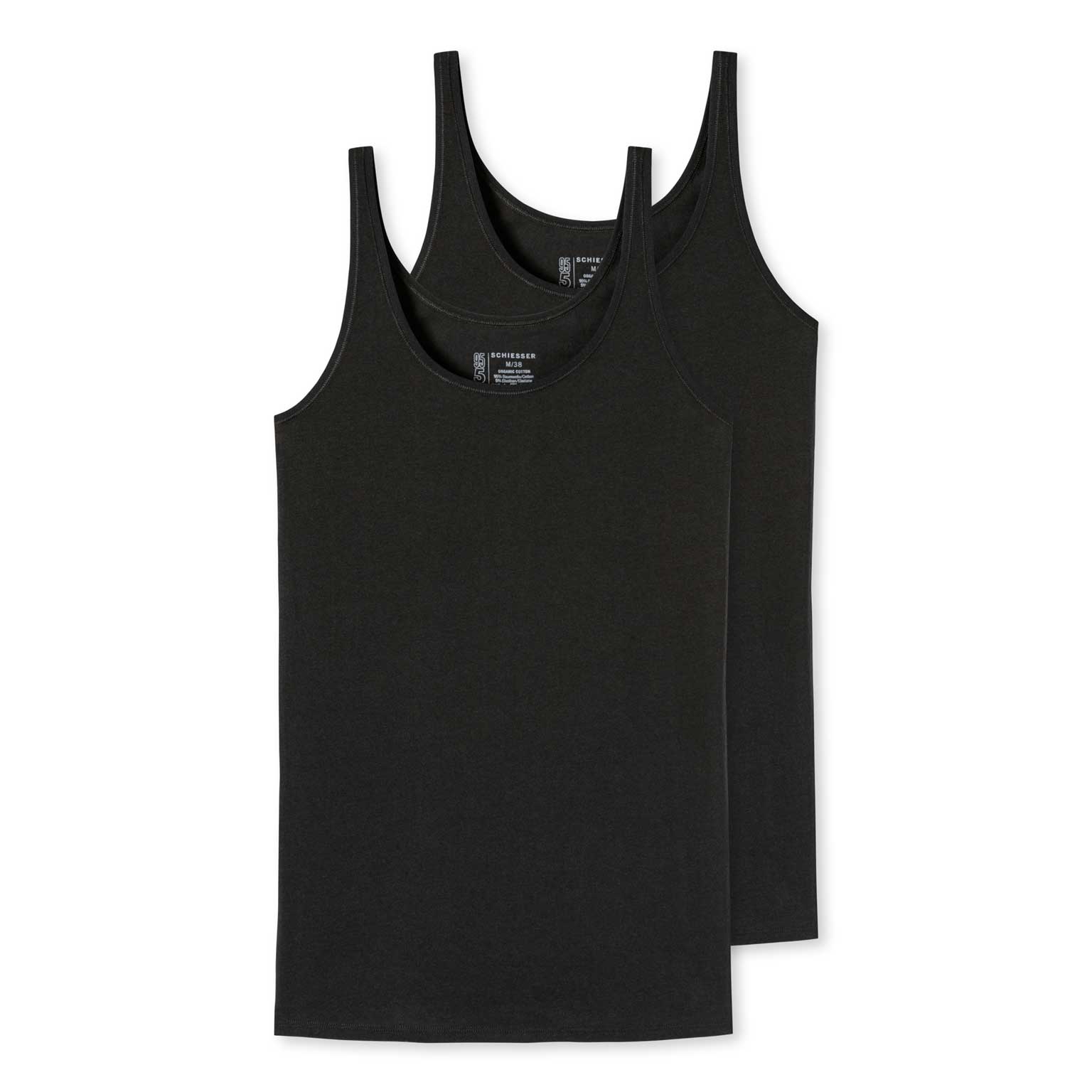 Ein Vorteilspack mit 2 Tops für Frauen aus der beliebten Schiesser "95/5" Serie. Die Tops bestehen aus seidig weicher Bio-Baumwolle, gemischt mit 5% Elastan und in Jersey gestrickt, für eine optimale Passform und den besten Tragekomfort. Dank des speziellen Produktionsverfahrens von Schiesser ist das Elastan im Stoff so gut geschützt, dass Sie die Tops bei bis zu 60 Grad waschen können, ohne dass sie ihre Form verlieren. Mit diesen Tops kaufen Sie die Qualität, die Sie von Schiesser erwarten können.