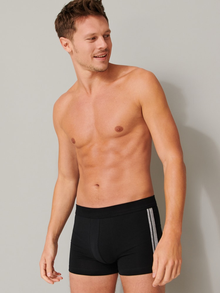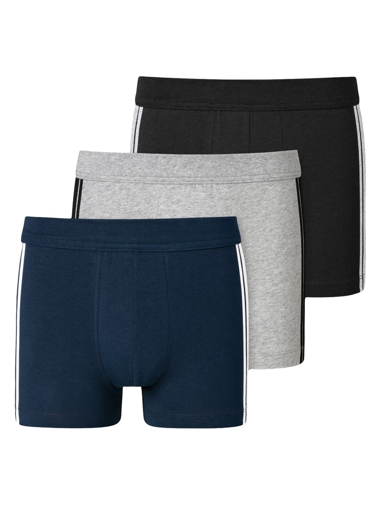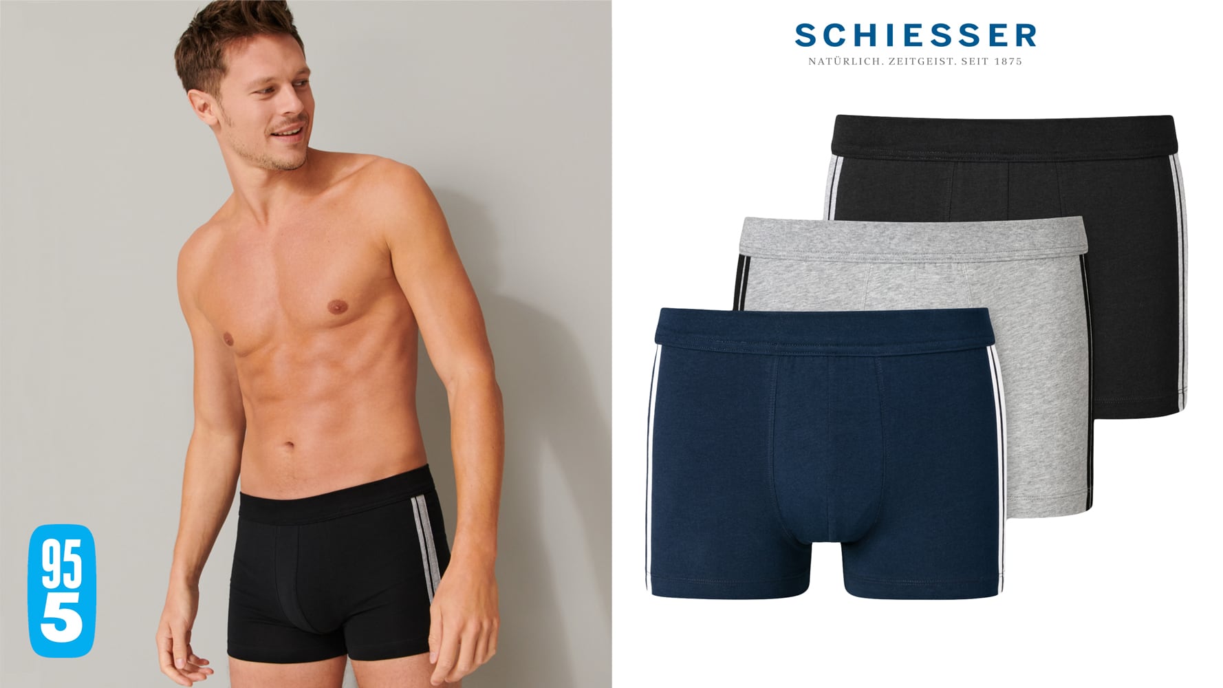 Basis-Unterwäsche im 3er-pack: diese Herren-Boxershorts aus der "95/5" Serie von SCHIESSER, die in Perfektion hohen Tragekomfort mit einem Basic Look kombinieren. Hergestellt aus elastischem, einfachen Jerseystoff aus 95%-iger mattglänzender Bio-Baumwolle und 5% Elasthan. Das ist nicht nur sehr angenehm weich auf der Haut, aber behält auch ausgezeichnet die Paßform während des Tragens. Diese Herrenunterhose ist ausgeführt mit einem grauen, gewebten, elastischen Taillenbund. Diese zwei Herrenshorts aus der "95/5" Serie sind ideal geeignet für Herren, die kostengünstige Unterwäsche in hoher SCHIESSER-Qualität zu schätzen wissen.