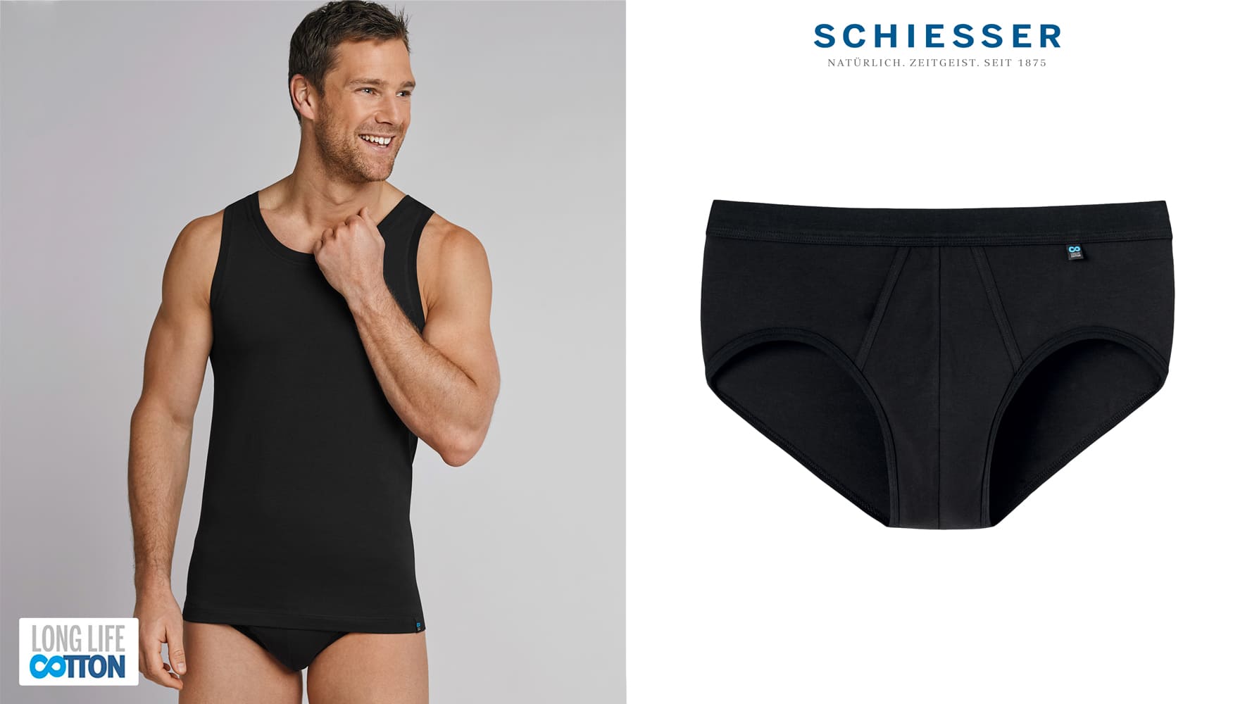 Für den echten Baumwoll-Liebhaber hat SCHIESSER die Long Life Cotton Serie entwickelt. Mit diesem Long Life Cotton Sport Slip mit Eingriff präsentiert SCHIESSER eine Herren-Unterhose die wesentlich länger hält als herkömmliche Baumwoll-Unterhosen. Durch einen neuen Veredlungsprozeß sorgt SCHIESSER für eine Revolution im Bereich Empfindung und Äussehen dieses Herrenslips, der sogar nach vielen Wäschen immer noch wie neu aussieht. Mit diesem Sport-Slip von SCHIESSER kaufst du dir einen Herrenslip, der nicht nur besonders weich auf der Haut ist und der auch nicht fusseln wird, sondern noch dazu eine perfekte Paßform hat. Eine männliche, komfortable Herren-Unterhose mit klassischem Schnitt in bester SCHIESSER-Qualität.