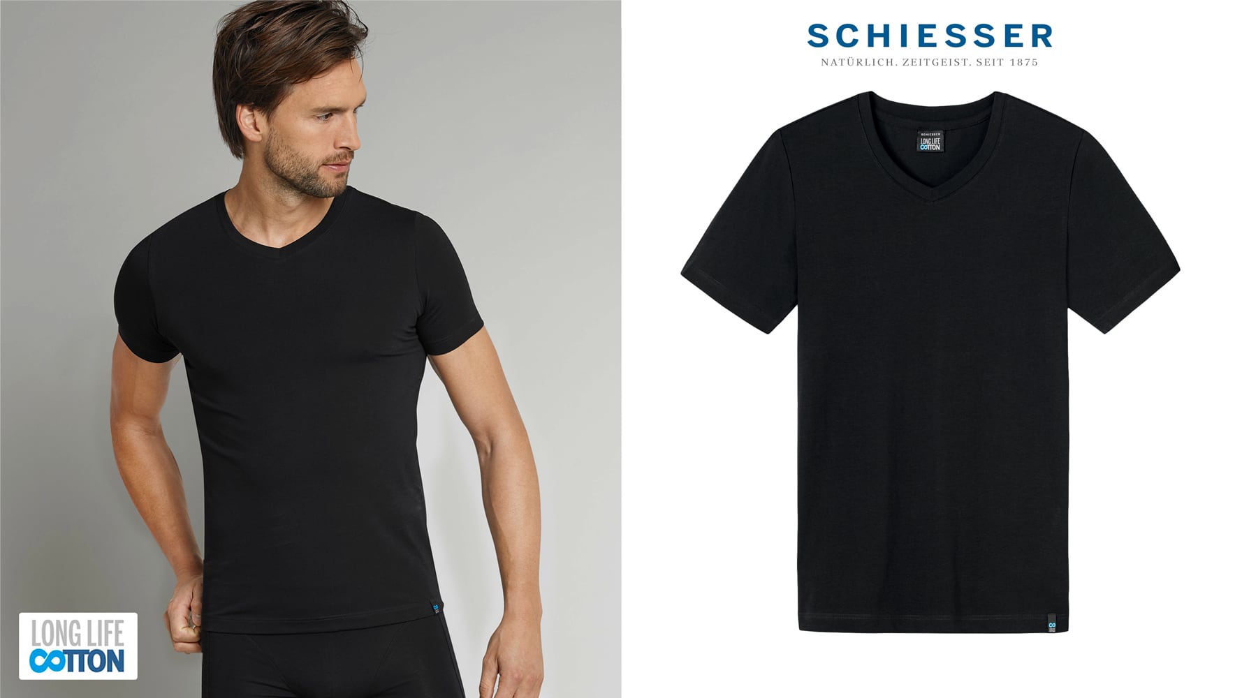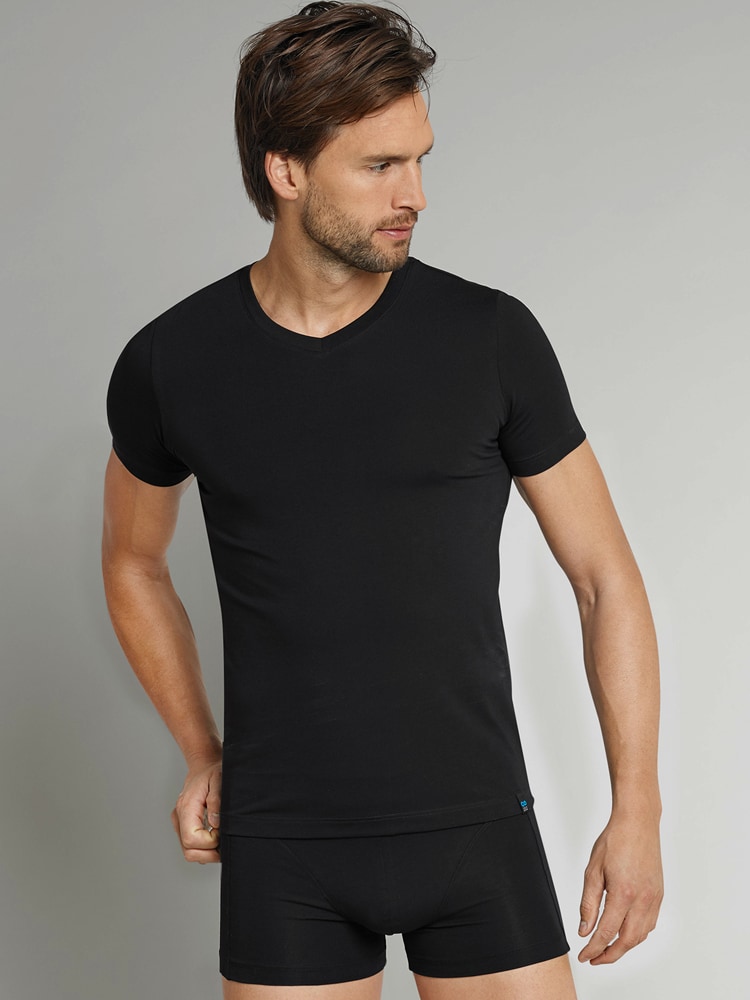 In der Long Life Cotton Serie hat SCHIESSER auch ein T-Shirt mit V-Hals-Ausschnitt und 3/4 Ärmel, speziell entwickelt für Männer die Baumwolle lieben. Die Long Life Cotton Serie ist durch einen besonderen Veredlungsprozeß nicht nur besonders weich auf der Haut, sondern wird auch nicht fusseln, weshalb dein Hemd länger halten wird als herkömmliche Baumwolle und folglich auch länger wie neu aussehen wird, sogar nach längerem Tragen und vielen Wäschen ! Mit diesem T-Shirt von SCHIESSER kaufst du dir ein Baumwoll-Shirt in bester SCHIESSER-Qualität!