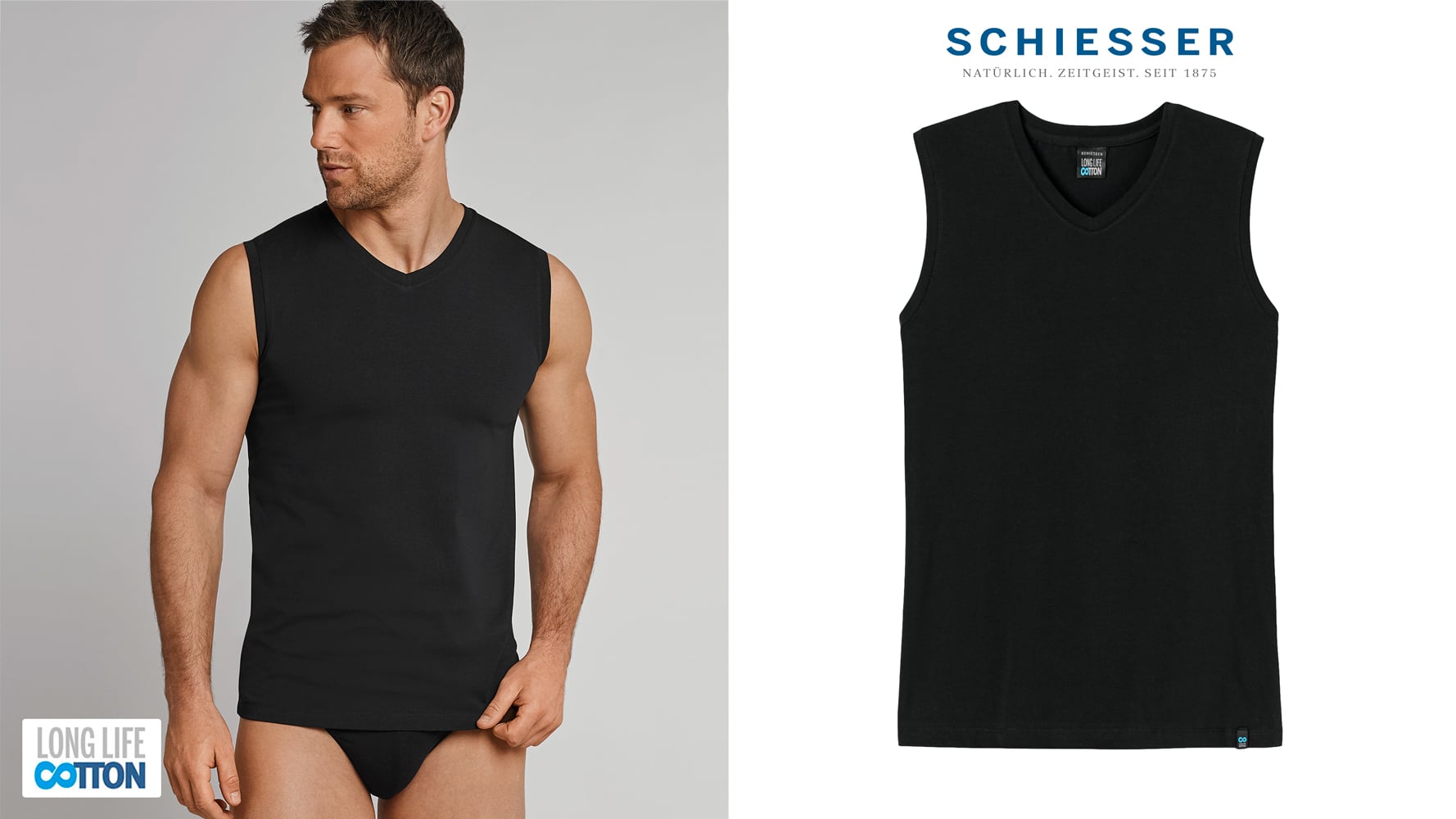 Tanktop von SCHIESSER aus der Long Life Cotton Serie, speziell für den Mann, der Baumwolle liebt hat SCHIESSER diese Serie entwickelt. Durch einen neuen Veredlungsprozeß fühlt sich die Baumwolle nicht nur besonders gut an auf der Haut sondern ist auch fusselarm und hält wesentlich länger als herkömmliche Baumwolle. Deshalb sieht dein Tanktop länger aus wie neu, sogar nach vielen Wäschen ! Mit diesem Tanktop von SCHIESSER kaufst du dir ein Shirt in bester SCHIESSER-Qualität.