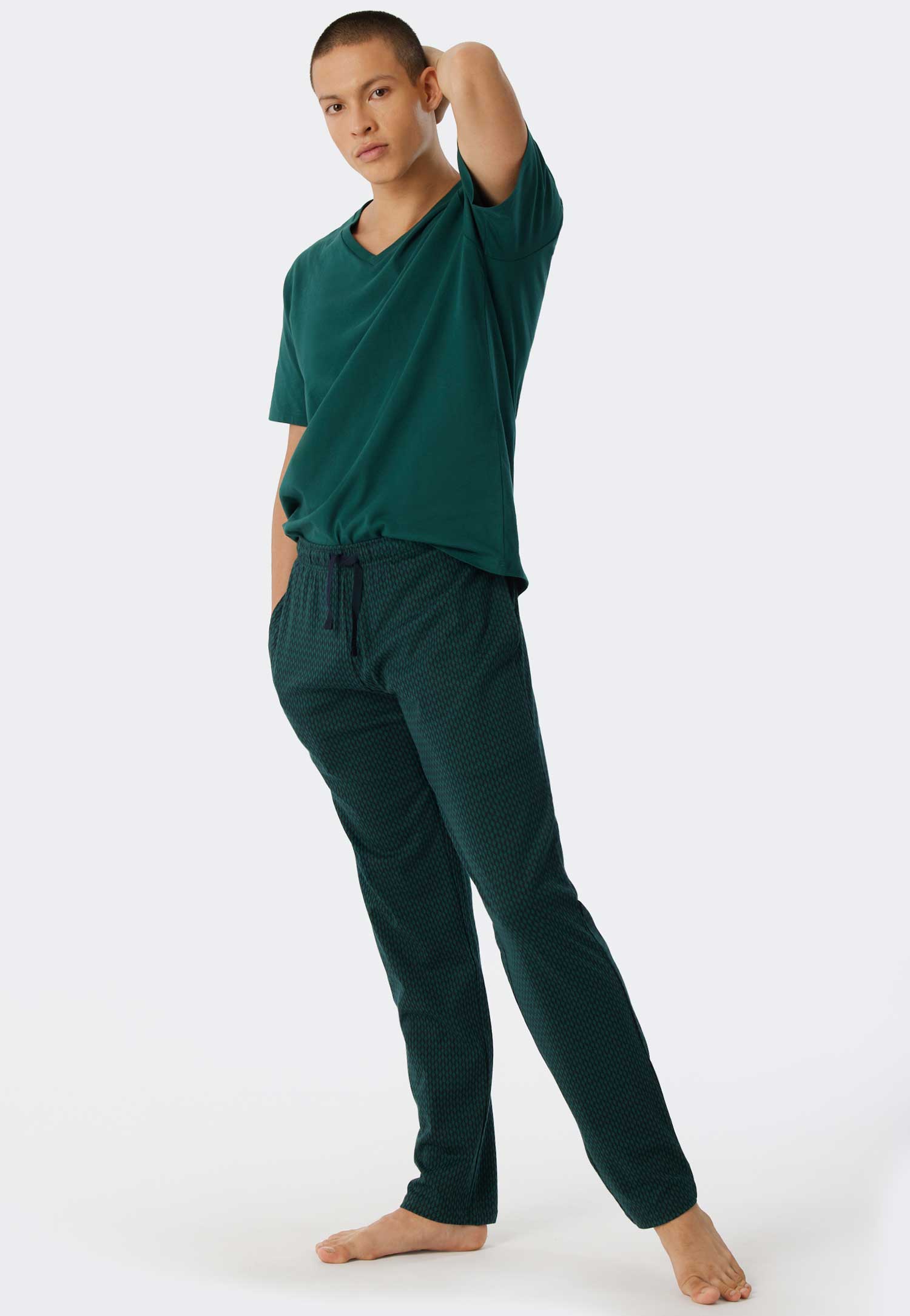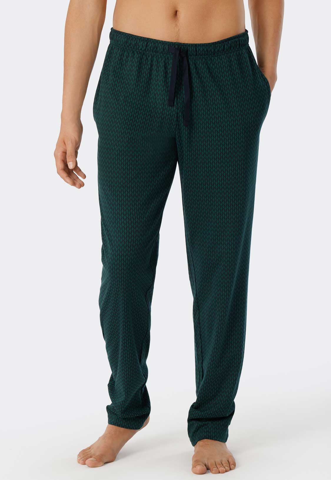Lange Lounge-Hose mit minimalistischem Grafik-Print aus 100% gewebter Bio-Baumwolle aus der Serie Schiesser Mix+Relax. Die Hose verfügt über einen funktionalen Hosenschlitz mit Knopf und hat links und rechts in den Saum eingenähte Taschen. Mit dem Kordelzug im Bund lässt sich die Hose perfekt zuschneiden, um die Passform zu verstärken. Die Hose fällt locker um den Körper, perfekt zum Entspannen. Baumwolle ist pflegeleicht und die Hose kann bei 60 Grad gewaschen werden.