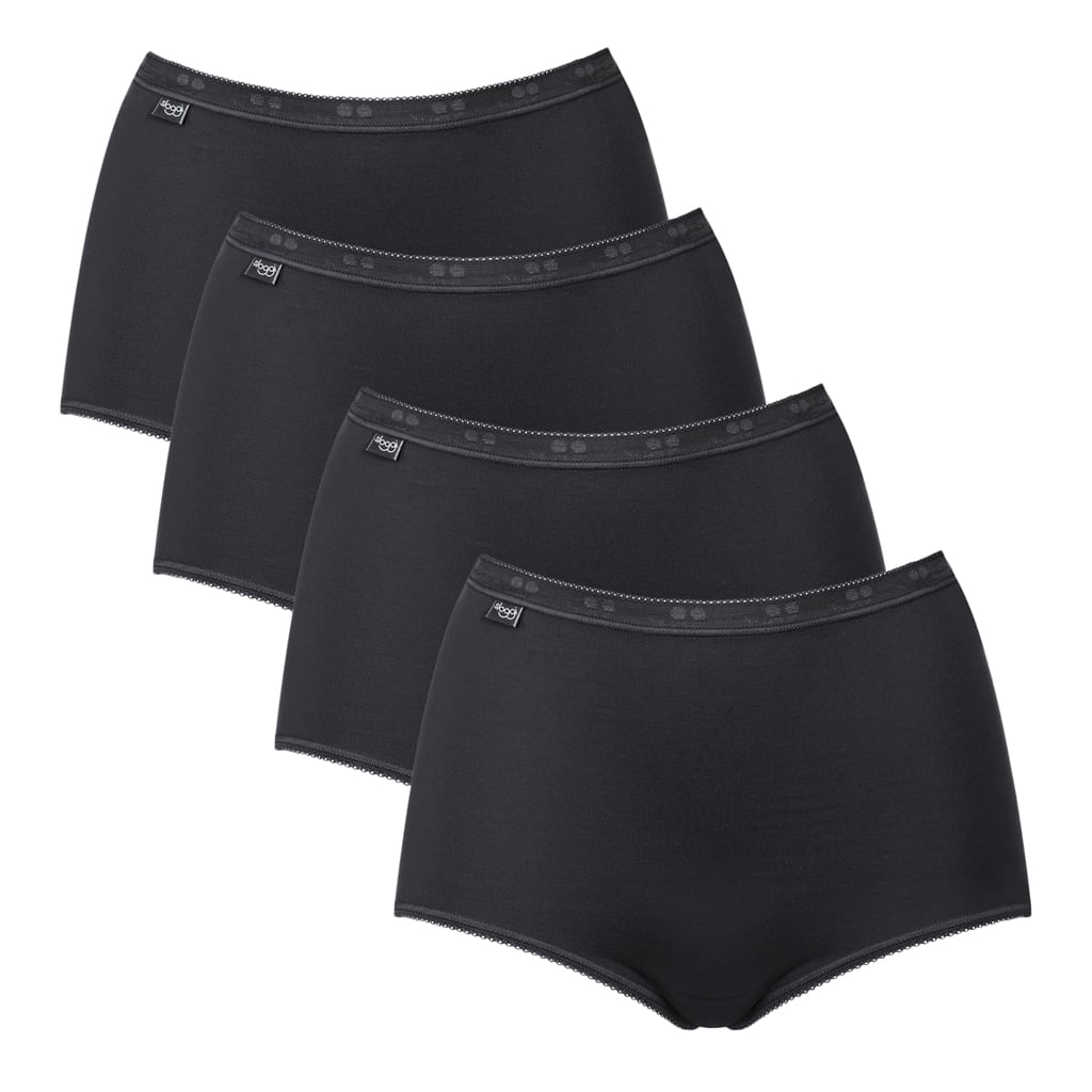 Mit der Serie Sloggi Basic+ entscheiden Sie sich für zeitlose Unterwäsche. Mit diesen bewährten Modellen kommen Sie gut durch den Tag. Die Basic+ Serie hat eine hervorragende Passform und fühlt sich dank des Baumwoll-Elastan-Mixes angenehm auf der Haut an. Baumwolle ist atmungsaktiv und leicht zu reinigen. Da das Elastan mit Baumwolle versponnen ist, können Sie die Basic+ Serie bei mindestens 60 Grad waschen, ohne dass sie ihre Passform verliert! Mit dem Vorteilspaket erhalten Sie 4 Maxislips zum Preis von 3! Sie reichen bis zum Bauchnabel und bedecken einen Teil des Bauches für zusätzliche Wärme und Komfort. Mit diesem Multipack kommen Sie eine ganze Weile aus.