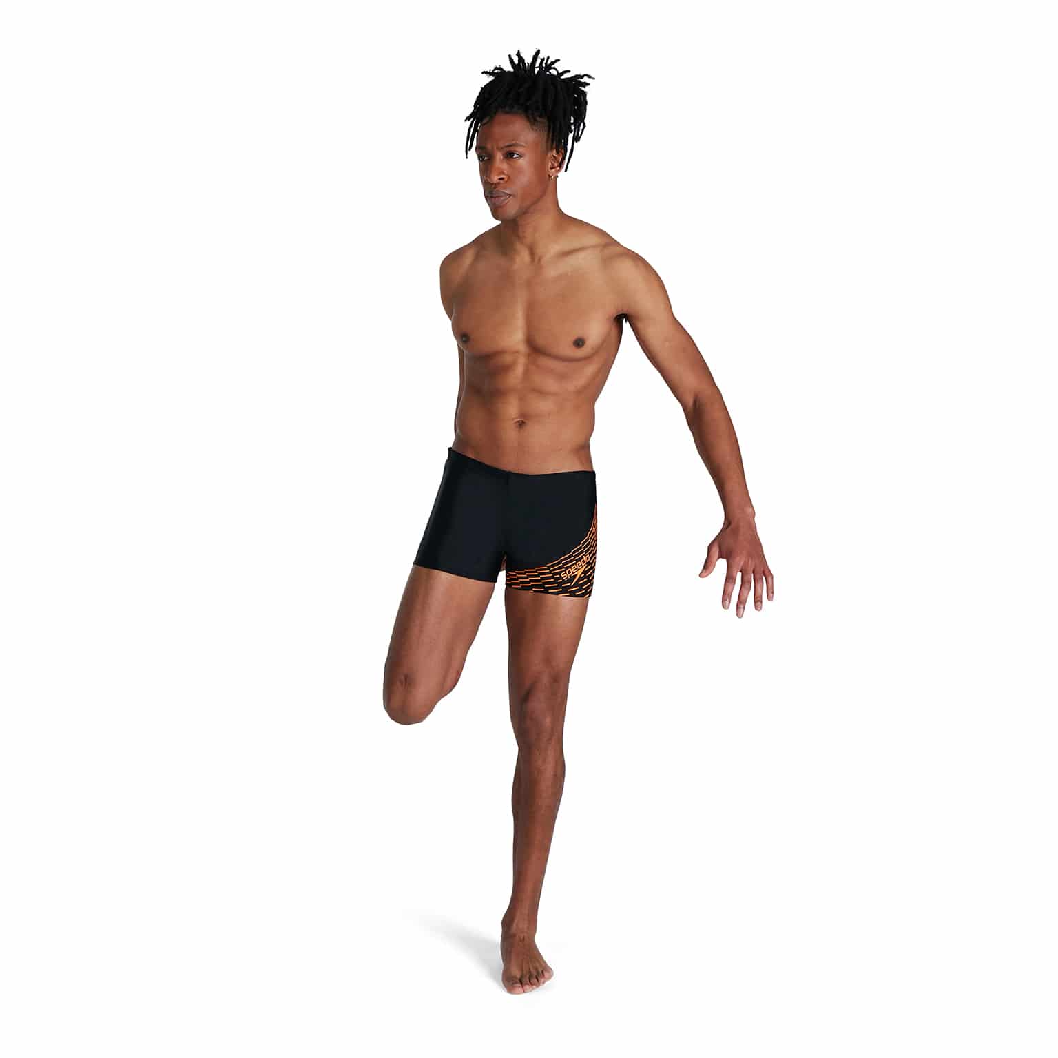 Die Gala Logo Aquashorts ist eine enganliegende Badeboxer von Speedo, die hergestellt wird in"Endurance 10" Qualität. Dadurch ist deine Badehose besser geschützt gegen Chlor. Daneben ist der Stoff sehr dehnbar und wird dir enorme Bewegungsfreiheit ermöglichen wegen der guten Paßform. Die Gala Logo Aquashorts ist erhältlich in der Farbe schwarz mit dem Speedo Logo und einem schönen gelben Aufdruck an der Seite. Die Badehose hat eine Zugkordel im Hüftbund, sodaß sie gut sitzen bleibt und nicht verrutscht.