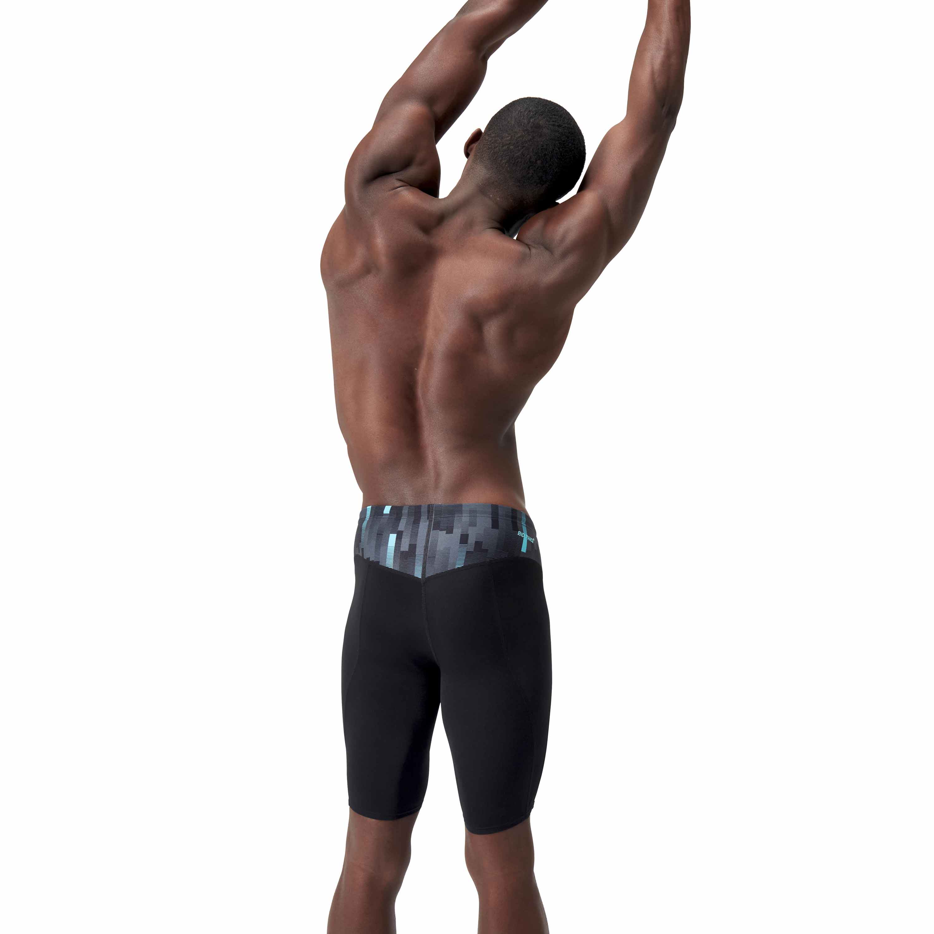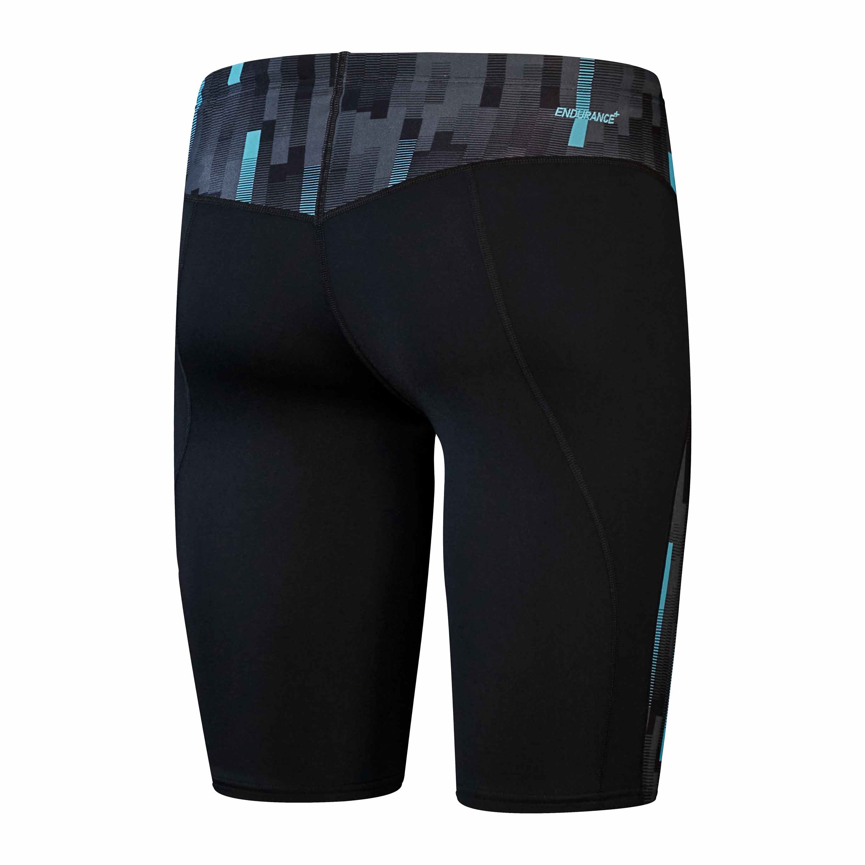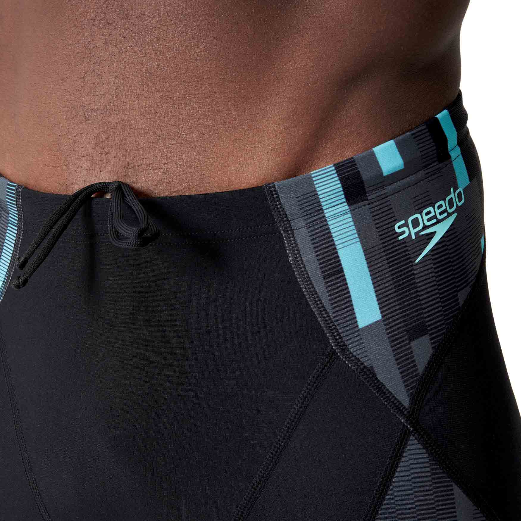 Eco+ Compression Jammer von Speedo, perfekt für das Training und mit einem geometrischen Print versehen. Der lange Schwimm-Boxer besteht aus Eco Endurance+ Max, einem chlorbeständigen Stoff, der schnell trocknet und viel länger hält als normale Badebekleidung. Der Silikonbund mit seinem flachen inneren Kordelzug passt den Jammer perfekt an deine Taille an. Dank des V-Schnitts mit Mesh-Futter genießt du ein erhöhtes Maß an Komfort. Eco Endurance+ Max besteht aus recycelten Materialien.