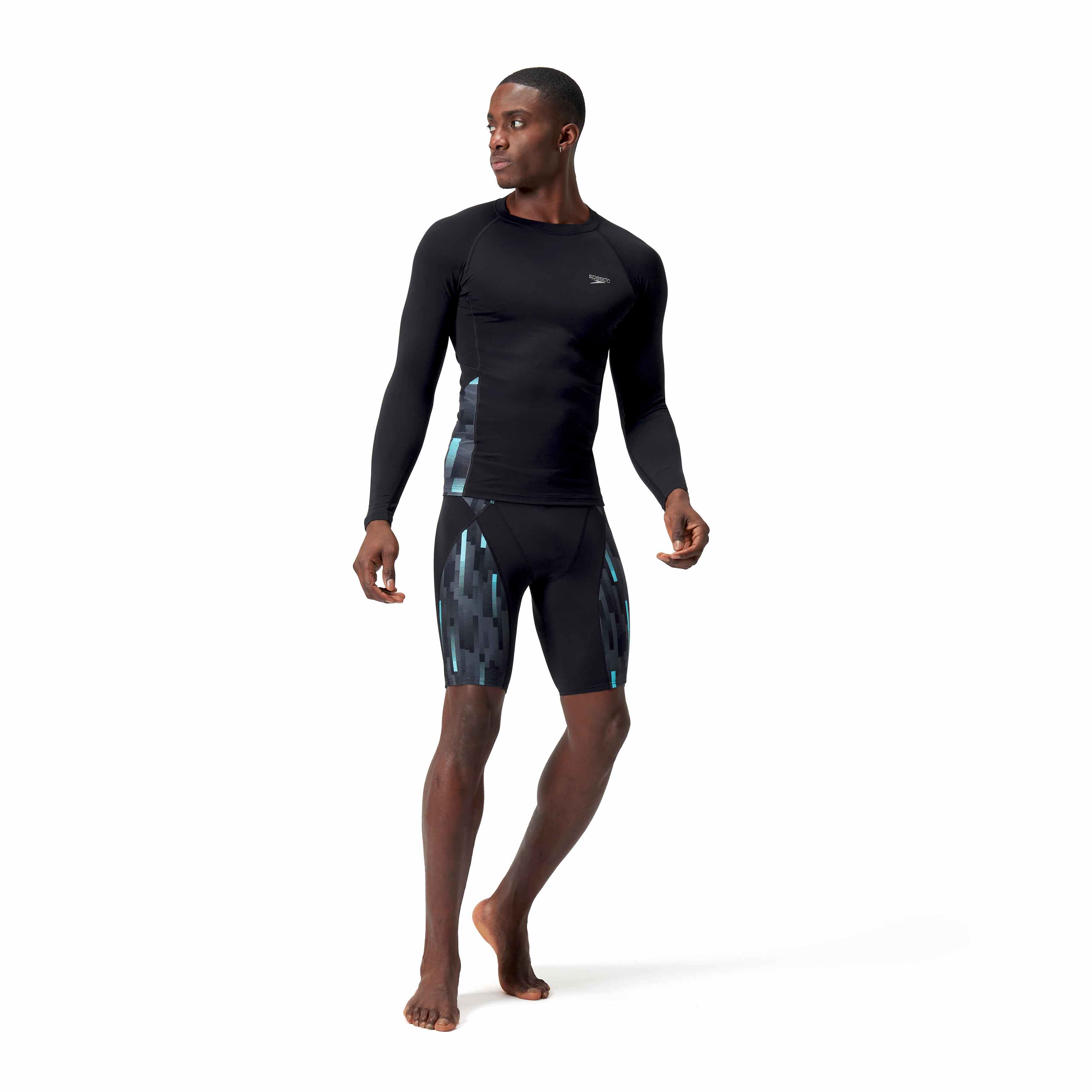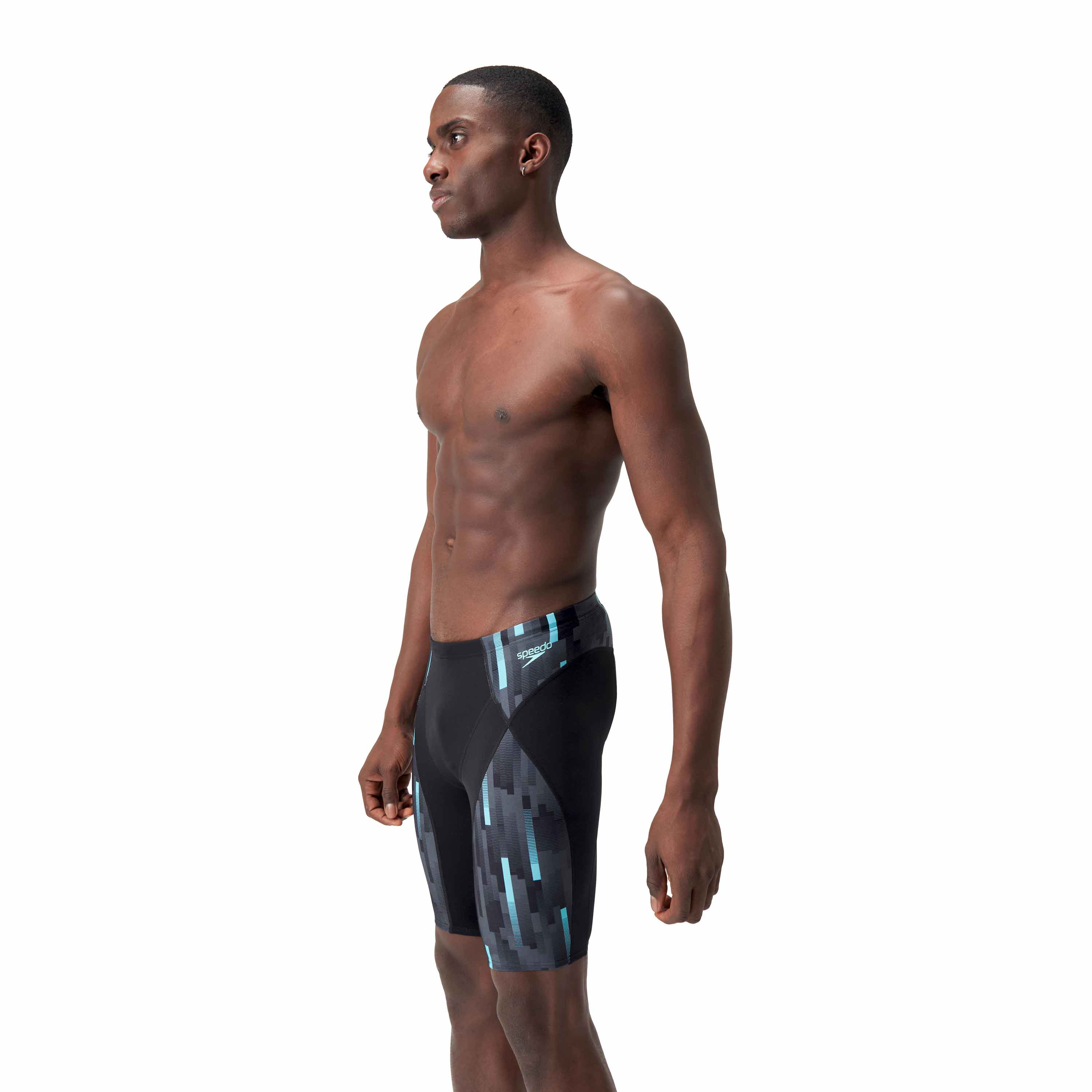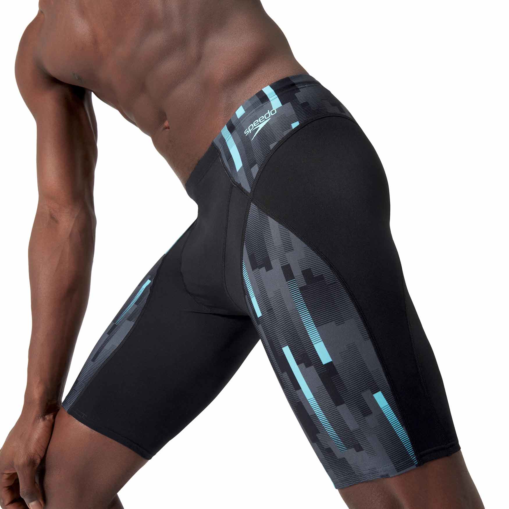 Eco+ Compression Jammer von Speedo, perfekt für das Training und mit einem geometrischen Print versehen. Der lange Schwimm-Boxer besteht aus Eco Endurance+ Max, einem chlorbeständigen Stoff, der schnell trocknet und viel länger hält als normale Badebekleidung. Der Silikonbund mit seinem flachen inneren Kordelzug passt den Jammer perfekt an deine Taille an. Dank des V-Schnitts mit Mesh-Futter genießt du ein erhöhtes Maß an Komfort. Eco Endurance+ Max besteht aus recycelten Materialien.