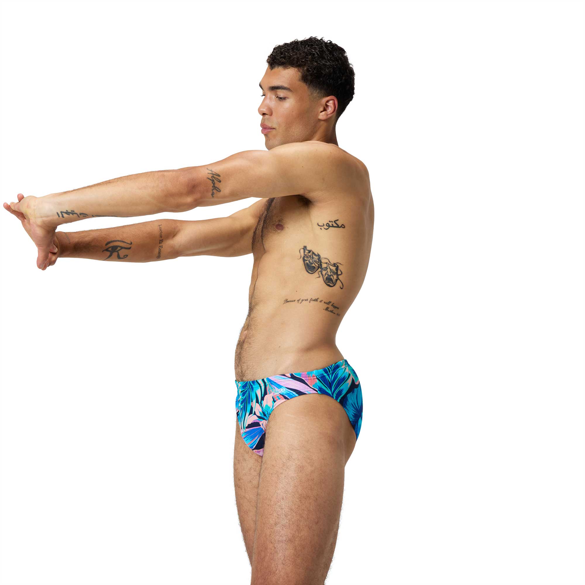 Auffällige 5 cm Badehose mit einem rundum farbenfrohen Print. Die Badehose sitzt äußerst bequem und verfügt über einen Kordelzug in der Taille für eine individuell anpassbare Passform. Die Badehose besteht aus Speedo Flex, einem Material aus Nylon und Elasthan, das sich perfekt an die Körperform anschmiegt. Zudem bietet Speedo Flex einen UV-Schutz von UPF 50+. Der perfekte Badeanzug für den Strand oder den Urlaub.