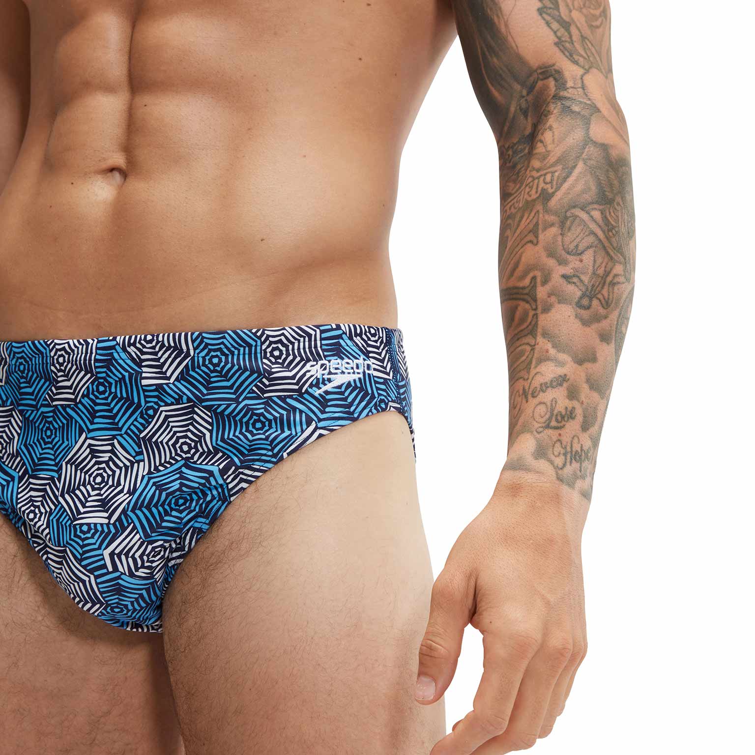 Dieser Escape 5cm Slip verströmt einen entspannten australischen Stil und bringt dich mit einem schönen Blattdruck, der von der australischen Pflanzenwelt inspiriert ist, zurück zu unseren Wurzeln. Der bequeme Slip verfügt über ein Speedo-Logo im Retro-Stil auf der Rückseite und einen Bund mit Kordelzug, der für einen besseren Sitz beim Schwimmen sorgt. Der Schwimmslip besteht aus ECO EnduraFlex-Gewebe und ist dank des Elastananteils sofort bequem. Der perfekte Schwimmslip für den Strand oder einen entspannten Urlaub.