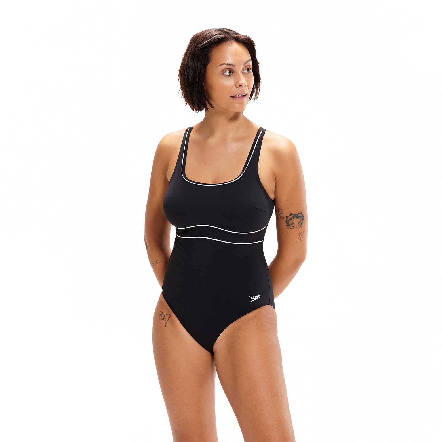 Der Contour Eclipse ist ein Sculpture-Schwimmanzug aus der Shaping-Kollektion von Speedo und der Ersatz für den Countourlustre. Das Sculpture-Gewebe passt sich perfekt an den Körper an und betont die weiblichen Kurven für eine wunderbar stromlinienförmige Figur, ohne Kompromisse beim Komfort einzugehen. Der Badeanzug bietet eine mittlere Bruststütze, die in den Stoff eingewebt ist, und hat eine formende Wirkung auf den gesamten Körper. Mit den verstellbaren Schulterträgern können Sie den Badeanzug auf Ihre perfekte Größe einstellen. Der Contoure Eclipse hat einen geraden Halsausschnitt, der dennoch viel Platz für Frauen bietet, die oben etwas breiter sind oder einen größeren Cup brauchen. Das Sculpture-Gewebe hält beim Schwimmen im Chlor bis zu 2x länger als herkömmliche Badebekleidung, so dass Sie länger Freude an Ihrem Badeanzug haben können.