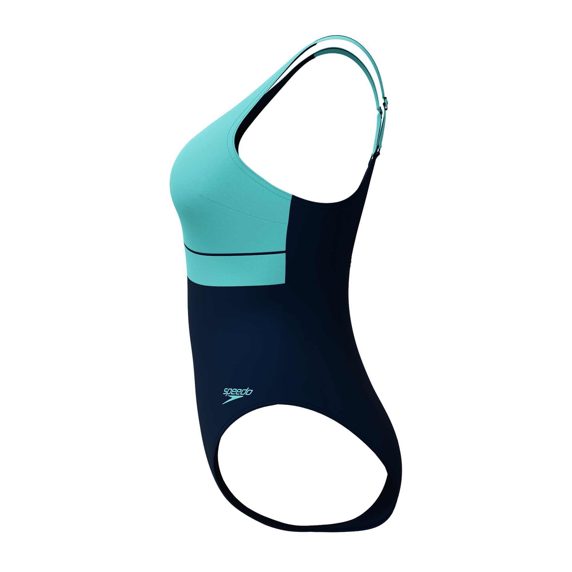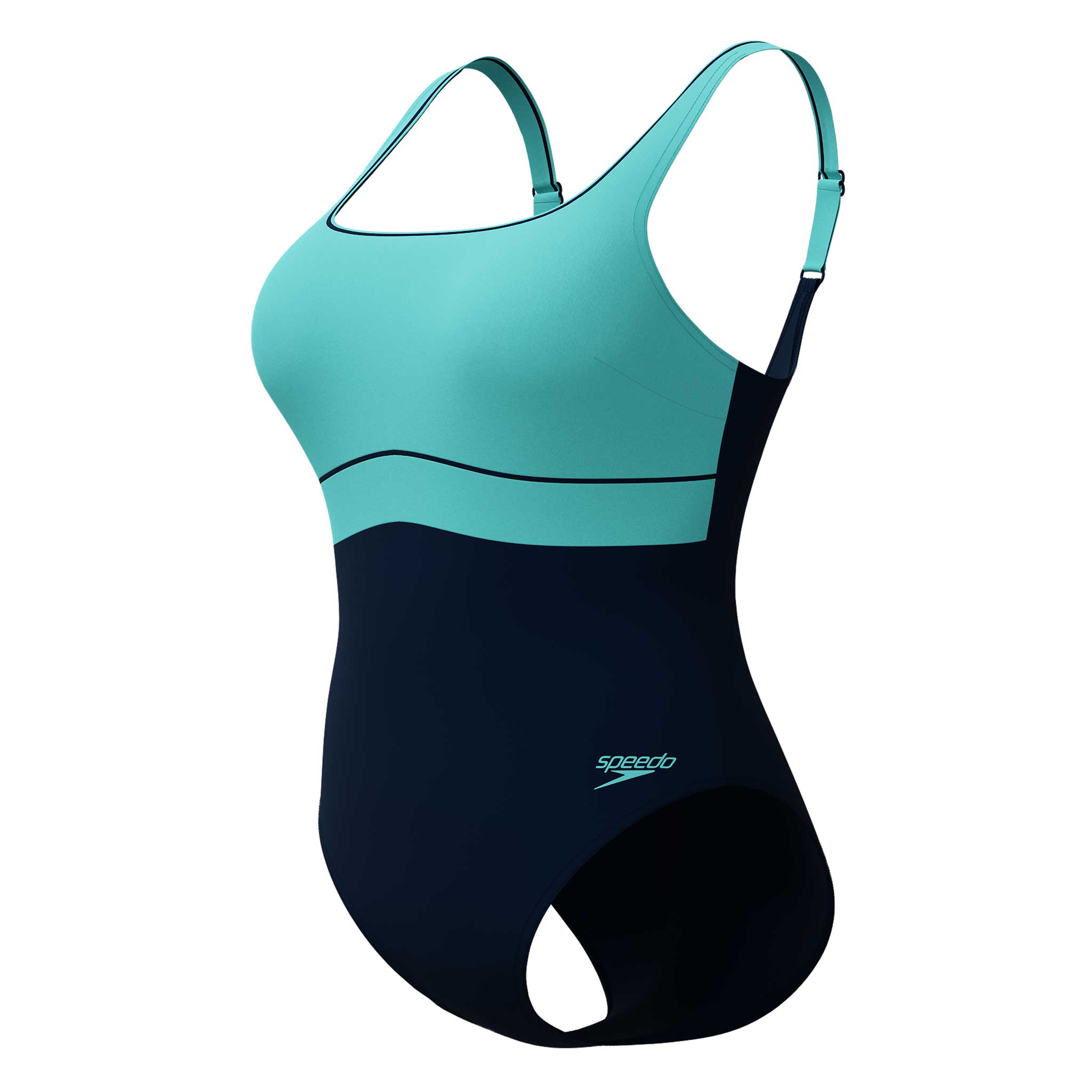 Der Contour Eclipse ist ein Sculpture-Schwimmanzug aus der Shaping-Kollektion von Speedo und der Ersatz für den Countourlustre. Das Sculpture-Gewebe passt sich perfekt an den Körper an und betont die weiblichen Kurven für eine wunderbar stromlinienförmige Figur, ohne Kompromisse beim Komfort einzugehen. Der Badeanzug bietet eine mittlere Bruststütze, die in den Stoff eingewebt ist, und hat eine formende Wirkung auf den gesamten Körper. Mit den verstellbaren Schulterträgern können Sie den Badeanzug auf Ihre perfekte Größe einstellen. Der Contoure Eclipse hat einen geraden Halsausschnitt, der dennoch viel Platz für Frauen bietet, die oben etwas breiter sind oder einen größeren Cup brauchen. Das Sculpture-Gewebe hält beim Schwimmen im Chlor bis zu 2x länger als herkömmliche Badebekleidung, so dass Sie länger Freude an Ihrem Badeanzug haben können.