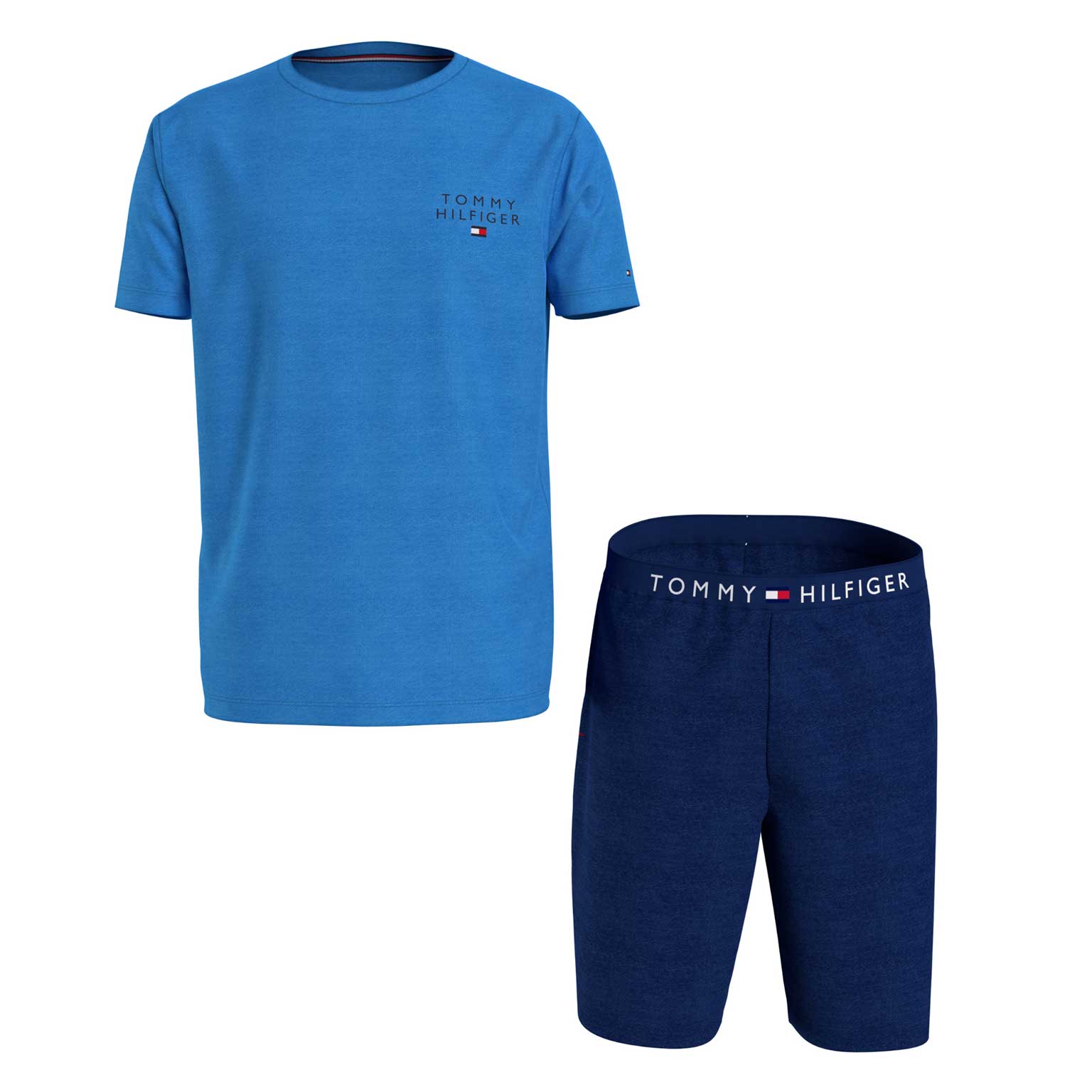 Ein bequemes kurzes Pyjama-Set von Tommy Hilfiger. Dieses kurze Pyjama besteht aus 100% Baumwolle, die zu einem Jersey gestrickt ist, um eine leichte Dehnbarkeit zu bieten. Das Set besteht aus einem Shirt mit Rundhalsausschnitt und kurzen Ärmeln, kombiniert mit Shorts mit einem elastischen Bund.