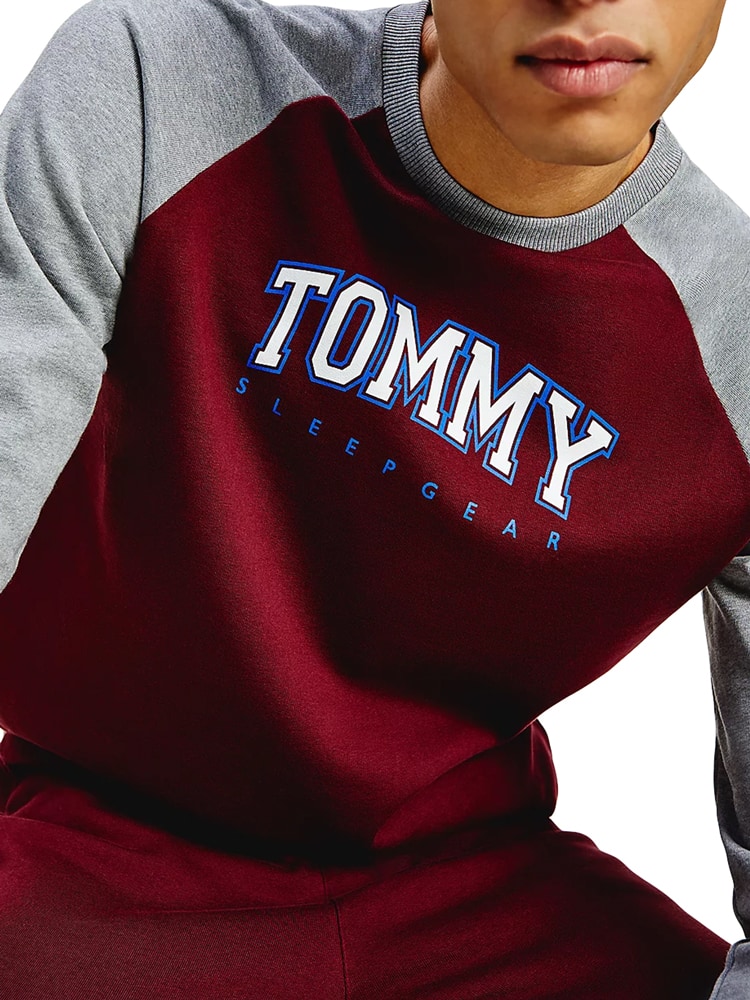 Ein schöner Sweatshirt aus Bio-Baumwolle und recycelter Baumwolle mit einem klassischen Baseball-Look. Der Pullover hat ein Tommy-Logo auf der Brust und kann mit passenden Hosen kombiniert werden, um ein gemütliches Schlaf-/Loungewear-Set zu schaffen.